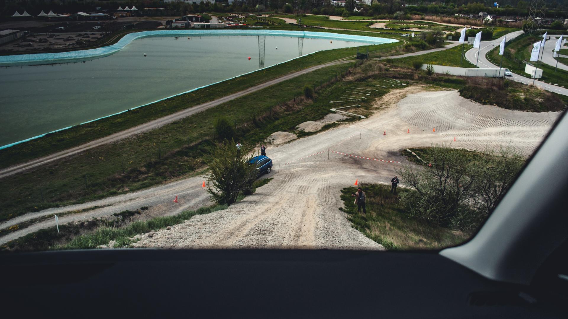 Szutrowa droga wiedzie dalej na wzniesienie. Zza kierownicy wydaje się dość strome, ale napęd daje sobie radę i pojawiamy się na szczycie. Tylko, że z tego szczytu nie widać zjazdu! Jedynie chmury i gdzieś w oddali jezioro. Trzeba tu wykonać tzw. „skok wiary” i rzucić się w nieznane, ufając, że jeśli coś pójdzie nie tak, poduszki powietrzne zadziałają, kiedy zatrzymamy się na płocie. Wybieramy tryb offroad, dodajemy gazu i… powstrzymujemy się przed wciśnięciem hamulca. Zjazd robi wrażenie, ale tylko na kierowcy. Scout spokojnie przyhamowuje koła, dbając o to, by ich nie zablokować. Jeśli osiągamy chwilowo zbyt dużą prędkość, mocno hamuje zaraz po odnalezieniu przyczepności. Kierowca z doświadczeniem w jeździe terenowej poradziłby sobie i bez tego systemu, ale w czasach, kiedy wszystko chcemy mieć tu i teraz - najlepiej bez wysiłku - Skoda bezpiecznie sprowadzi na dół spragnionego wrażeń kierowcę.