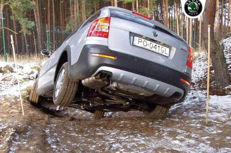 Octavia Scout 4×4 to auto przystosowane do lekkich jazd off roadowych. Zapewnia je 180-milimetrowy prześwit oraz napęd na cztery koła z wielopłytkowym sprzęgłem Haldex. „Normalnie" napędzane są tylko koła przednie, ale gdy dojdzie do uślizgu kół na skutek pogorszenia się przyczepności podłoża (piasek, śnieg), napęd automatycznie natychmiast przekazywany jest również na koła tylne w odpowiednich do warunków proporcjach. To dobre rozwiązanie znane ze zwykłej Octavii 4×4, sprawdzające się w trudnych warunkach drogowych, czy na leśnych i polnych drogach. Model Scout dodatkowo ma ochronne listwy na nadkolach i osłony podwozia. Z kolei 17-calowe alufelgi czy podwójne rury wydechowe służą raczej poprawieniu prezencji pojazdu i zachowaniu na asfaltowej nawierzchni.