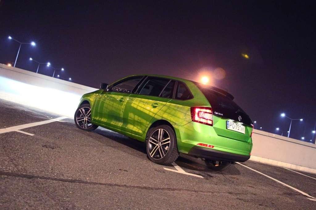 Szczerze mówiąc, patrząc na Spacebacka, trudno się nim jakoś szczególnie zachwycić. To po prostu krótsza o 18 cm wersja znanego już samochodu. Bardziej zwarta i przez to może odrobinę ładniejsza oraz bardziej dynamiczna – kwestia gustu. Zupełnie inaczej jednak odbiera się Rapida, jeśli jest on w wersji Style Plus, tak jak testowany egzemplarz. Ta limitowana odmiana oznacza bardzo ładne, 17-calowe alufelgi, czarne lusterka, panoramiczny dach, częściowo przeszkloną tylną klapę oraz przyciemnione tylne reflektory i szyby. Tak skonfigurowany Sportback, jeśli jeszcze wybierzemy do niego jakiś żywy kolor, potrafi wzbudzić zainteresowanie na ulicy. Nasz testowany egzemplarz wyglądał według niektórych osób jak sportowa wersja RS (co po części było zasługą rzucającego się w oczy lakieru)!