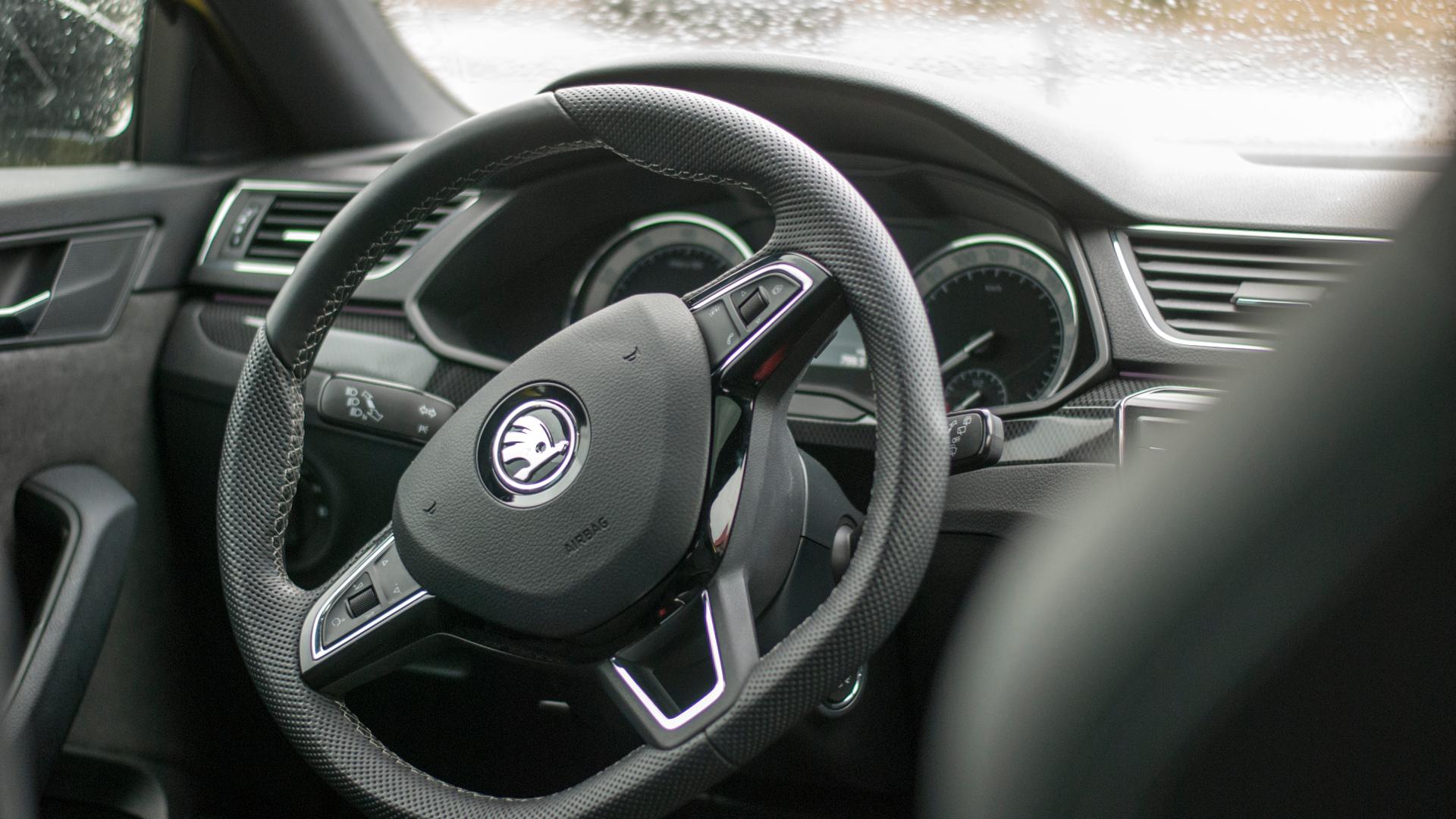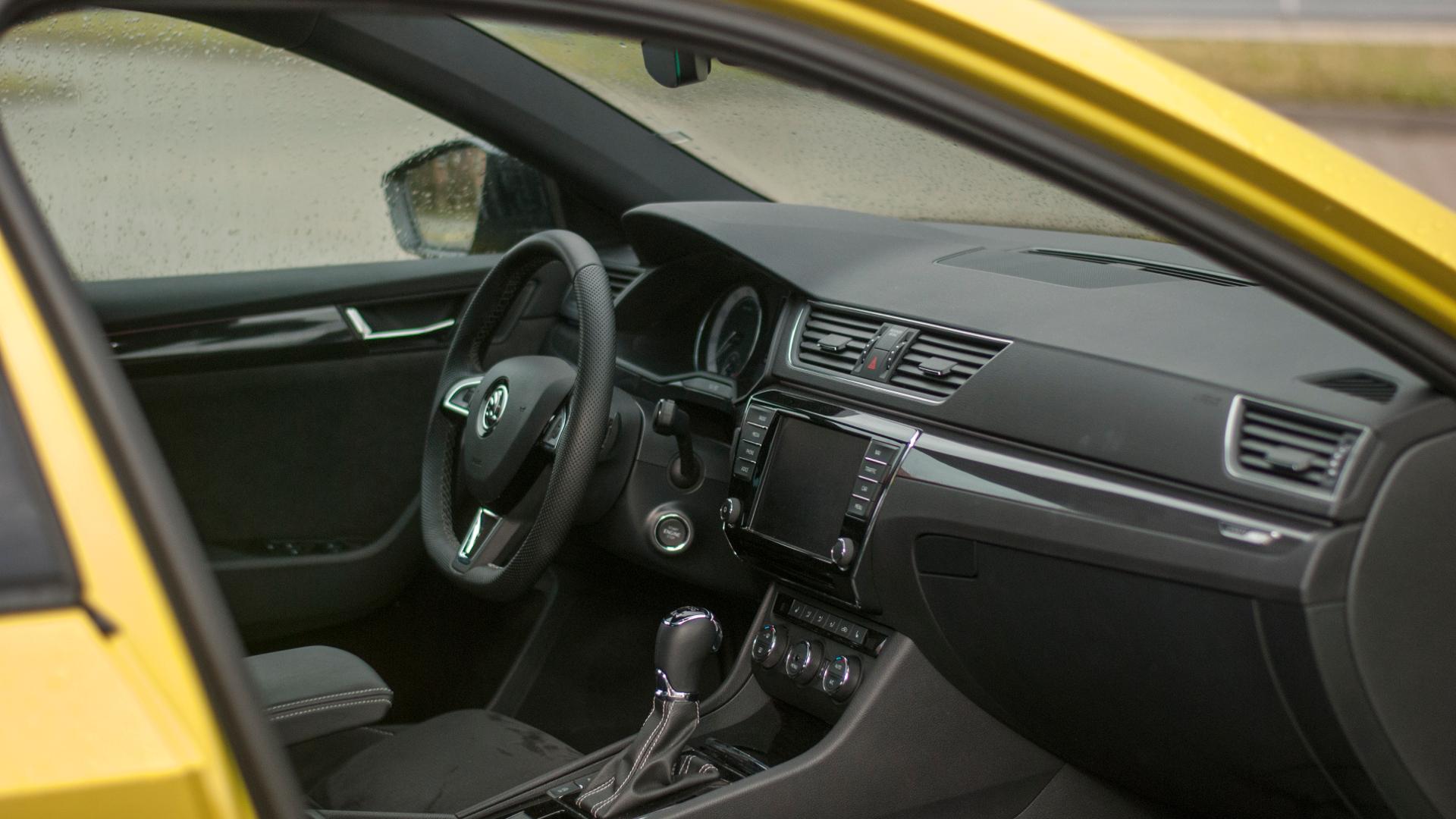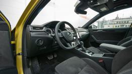Pokaźne wymiary da się odczuć przede wszystkim we wnętrzu. O ile przednie fotele oferują po prostu wygodną pozycję, dużo miejsca na nogi i doskonałe trzymanie boczne, to tylna kanapa pod względem przestrzeni jest bezkonkurencyjna. Odczucie z podróżowania w drugim rzędzie może być wręcz zabawne. Odległość do kierowcy jest na tyle duża, że prowadzenie rozmowy z kimś siedzącym na przednim fotelu, może wymagać pochylenia się do przodu, żeby lepiej słyszeć. I naprawdę chodzi tylko o ilość miejsca - kabina jest doskonale wyciszona i nawet przy wkręcaniu Superba na wyższe obroty, do wnętrza dociera tylko przyjemne mruczenie, chociaż bardziej za sprawą wydechu niż samego silnika. To jednak wciąż tylko 4 cylindry. Wracając do przestrzeni, wrażenie robi też bagażnik. Dostęp do niego na pewno ułatwia rozwiązanie, do którego Skoda zdążyła nas już przyzwyczaić. Liftback pozwala nam podnieść pokrywę bagażnika wraz z całą szybą. Poza miejscem - całe 625 litrów, uwagę zwraca regularny kształt przestrzeni bagażowej. To niemal idealny prostokąt z dodatkowymi wnękami po bokach. Ogromny plus. Siadając z powrotem na najlepszym z możliwych miejsc, czyli za kierownicą, bardzo łatwo poczuć się jak u siebie. To kolejne miejsce, gdzie Skoda oferuje nam tylko sprawdzone i znane z innych modeli rozwiązania. Do takich należy system nawigacji satelitarnej Amundsen, który można wymienić na nieco bardziej wydajny model Columbus czy panel sterowania klimatyzacją z serią fizycznych przycisków i pokręteł. Zegary to też klasyczny dla tej marki zestaw: są czytelne i co ważne, ich podświetlenie nie jest zbyt nachalne. Tu ciekawostka: efekty świetlne w postaci dyskretnych linii m.in. na obiciu drzwi są konfigurowalne, można samemu dobrać kolor iluminacji. We wnętrzu Superba w odmianie SportLine na szczególną uwagę zasługuje kierownica. Niewielka, zgrabna, ścięta u dołu, o bardzo ciekawym obiciu. Perforowana skóra doskonale leży w dłoniach i zapewnia chwyt pewniejszy niż w przypadku gładkiego materiału.