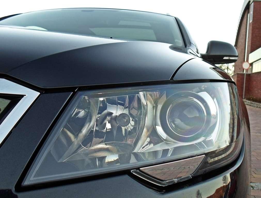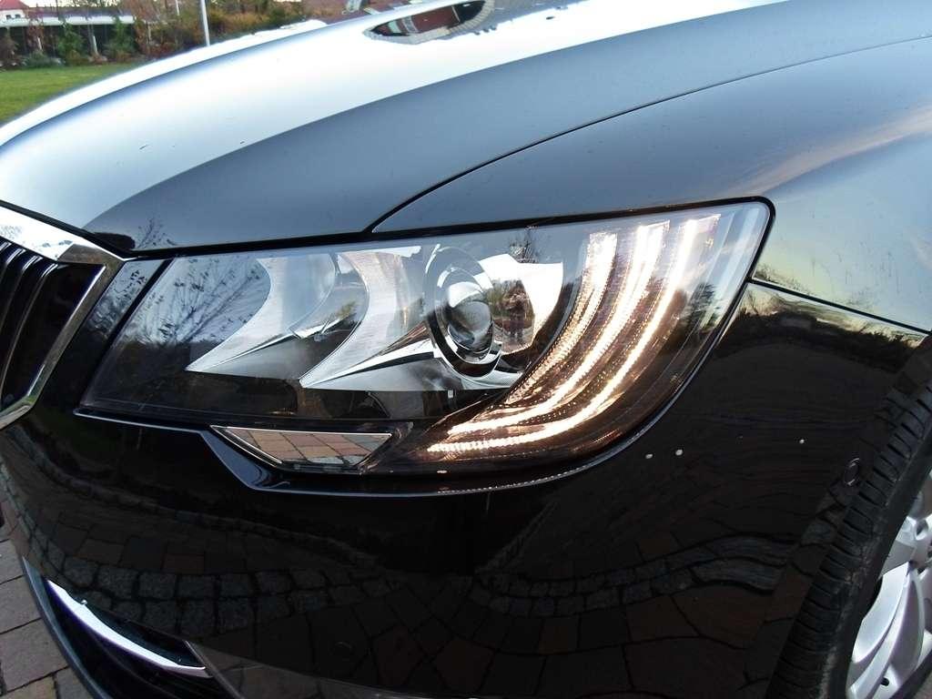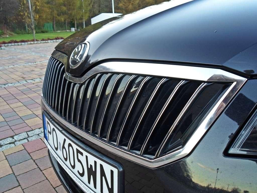 Skojarzenie liftingu samochodu z robieniem makijażu wydają się jak najbardziej słuszne. Czasami jedna "kreska" potrafi zmienić brzydkie kaczątko w łabędzia, a innym razem duże wysiłki stylistów nie przynoszą oczekiwanych zmian. Co zmieniło się w wyglądzie Superba? W oczy natychmiast rzuca się odświeżony pas przedni, który został dopasowany do stylu Rapida i nowej Octavii. Flagowa Skoda zachowała jednak charakterystyczne przymrużone spojrzenie, które ma w sobie nutkę agresywności i stateczności pasującej do limuzyny jaką ten samochód niewątpliwie próbuje być. Idąc z duchem czasu, projektanci wreszcie znaleźli miejsce na LED-y do jazdy dziennej. Z tyłu zmienił się wygląd lamp oraz klapy bagażnika. Światła otrzymały charakterystyczne ramki, a "właz" kufra nowe przetłoczenia i czcionkę oznaczenia modelu. To właściwie na tyle. Subtelne zmiany nie wnoszą wiele do Superba. Przypomina mi to poprawienie makijażu przez partnerkę podczas kolacji. Kiedy wróci z toalety widać jakąś zmianę, ale z całą pewnością stwierdzacie, że to ta sama osoba. Skromne zmiany dla jednych będą rozczarowaniem, dla innych zaletą. Nie zmienia to faktu, że Skoda pozostaje elegancka i klasyczna, zwłaszcza "ubrana" w czarny lakier i chromowane dodatki. Tym razem klimatu nie psuje nawet zielone tło logo producenta, które też jest czarne. Całość naprawdę może się podobać.