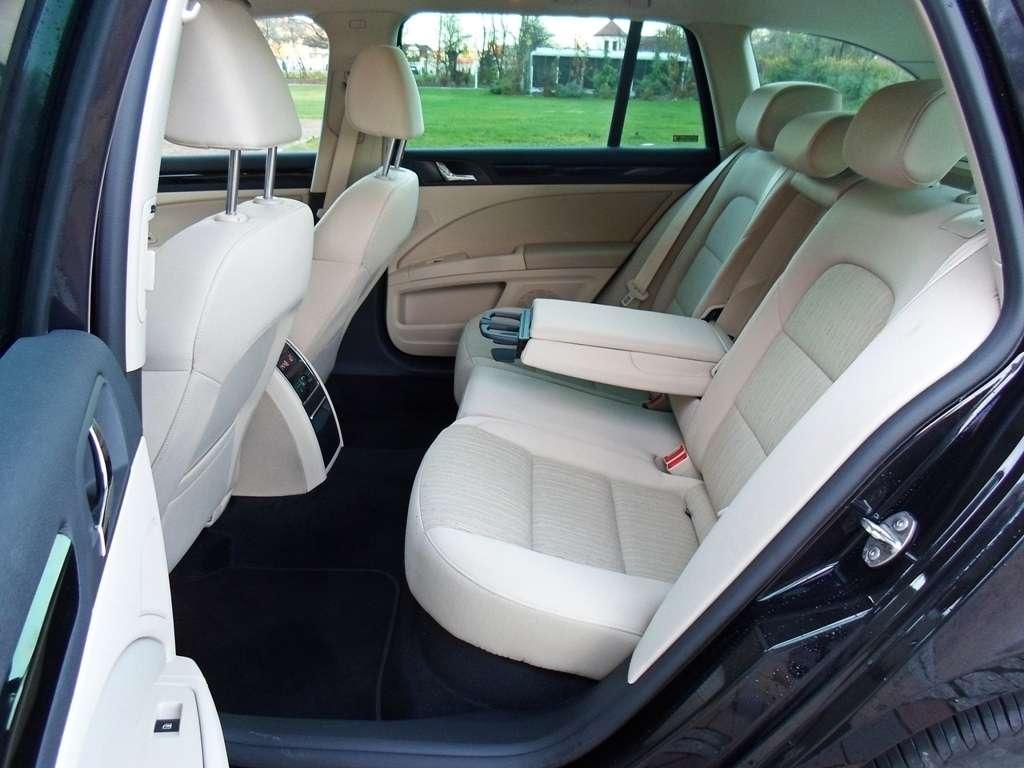 We wnętrzu nie tylko przestrzeń zasługuje na wyróżnienie, niezłe też są elektrycznie regulowane fotele, które zapewniają nie tylko dobry komfort, ale też dobre trzymanie ciała w zakrętach. Dodatkowo "krzesło" kierowcy ma funkcję pamięci dla trzech różnych kierowców. Tylna kanapa również została dobrze wyprofilowana i wyposażona w podgrzewanie siedziska. W podłokietniku znalazł się wysuwany uchwyt na napoje, który jest bardzo praktyczny. Wyskakuje po jednym kliknięciu, ale już jego złożenie wymaga nieco więcej kombinacji. Aby go schować i zablokować trzeba mocno się nagimnastykować. Przypuszczam, że ta czynność może stać się wrogiem długich i zadbanych damskich paznokci. Drogie Panie, uważajcie.