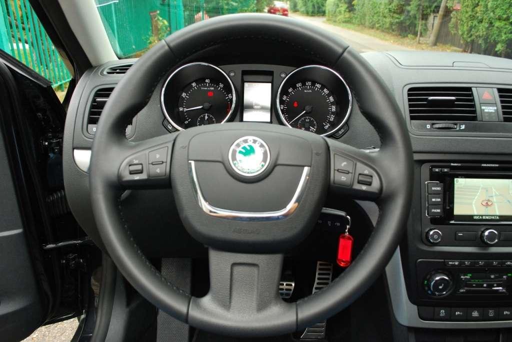Na tylnych fotelach z niezbyt długimi siedziskami najwygodniej będzie osobom o średnim wzroście. Z przodu jest lepiej - Skoda sięgnęła po obszerniejsze i dużo lepiej wyprofilowane siedzenia. Fotel kierowcy, nawet w najniższym położeniu, znajduje się relatywnie wysoko. Dzięki temu widoczność do przodu jest bardzo dobra. Niewiele widać natomiast do tyłu, więc warto pomyśleć o dopłaceniu za czujniki parkowania. Zakres kolumny kierowniczej nie należy do największych, a w niektórych położeniach jej wieniec przesłania górne części wskaźników. Podłokietnik na drzwiach został osadzony na tyle nisko, że bez zdjęcia lewej dłoni z kierownicy większość osób nie będzie w stanie z niego skorzystać. W przypadku środkowego podłokietnika taki problem nie istnieje. Miejsce pracy kierowcy nie zostało źle rozplanowane, jednak inne modele Skody udowadniają, że zaprojektowanie wnętrz bardziej przyjaznych prowadzącemu jest możliwe.