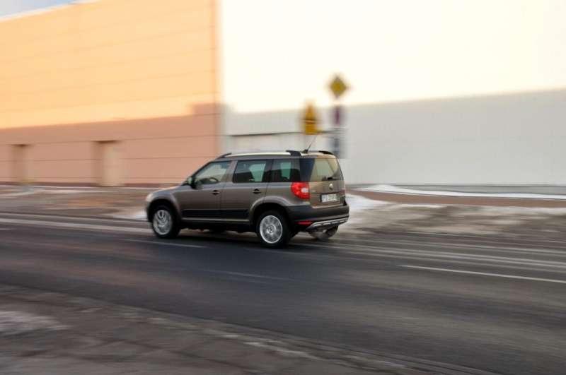 Turbodoładowany 122 konny silnik benzynowy 1,4 TSI został wprowadzony do oferty Yeti dopiero niedawno i można go zestawić wyłącznie z napędem na przednią oś i manualną skrzynią biegów. Moc silnika pozwala na dynamiczną jazdę, szczególnie na wysokich obrotach można poczuć sportowe akcenty. Komputer pokładowy proponuje jednak inny styl jazdy, każąc zmieniać biegi ledwo wskazówka obrotomierza zbliży się do 2000 obr/min. Posłusznie jadąc można bić rekordy niskiego spalania i jeszcze niższego ciśnienia krwi - jazda jest wówczas nudna jak flaki z olejem. Mimo 18 centymetrowego prześwitu zawieszenie bez problemu radzi sobie z każdym stylem jazdy – przy agresywnie pokonywanych zakrętach auto nie przechyla się na boki ani nie „ucieka” z nich. System stabilizacji toru jazdy działa tradycyjnie dla VW – stanowczo, ale nie za wcześnie. Nie określiłbym jednak Yeti mianem sportowca prowokującego kierowcę do wciskania gazu do dechy. Raczej jest to miś o wytrenowanych mięśniach ale łagodnym usposobieniu.