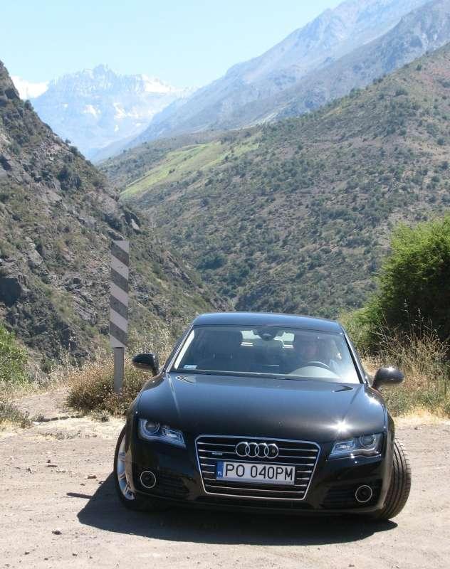 Ostatnim etapem podróży był wyjazd w Andy. Nie wyjechaliśmy tak wysoko jak w górach Atacamy, ale w o wiele krótszym czasie, wspinając się po stromych serpentynach. Sportback był w ciasnych skrętach pewny i stabilny, a mocne silniki pozwalały wspinać się bez wysiłku. Mieliśmy w Chile do dyspozycji dwie wersje silnikowe – benzynową i wysokoprężną. Obie trzylitrowe, z napędem quattro i automatycznymi skrzyniami biegów S-tronic mają prędkość maksymalną ograniczoną do 250 km/h. Turbodiesel ma moc 245 KM i maksymalny moment obrotowy 500 Nm. Ponad dwutonowe auto rozpędza do 100 km/h w 6,3 sekundy. Trzystukonnej wersji benzynowej, dysponującej maksymalnym momentem obrotowym 440 Nm wystarcza na to 5,6 sekundy. Mimo tak wielkich możliwości z dynamiki silników korzystaliśmy bardzo rozsądnie, starannie przestrzegając ograniczeń prędkości. Nasze zamiłowanie do poszanowania prawa wydatnie wzmagał widok częstych patroli policji uzbrojonych w nowoczesne, laserowe mierniki prędkości. W zestawieniu z benzynowym V6 turbodiesel może się w pierwszej chwili wydać powolny, ale jego dynamika dostarcza wiele przyjemności podczas jazdy, a dokonanie wyboru ułatwia przejazd przez stację benzynową – podczas gdy silnik benzynowy potrzebuje na przejechanie 100 km 8,2 l benzyny, turbodieslowi wystarcza 6 l oleju napędowego. Moim zdaniem oszczędność na paliwie jest znacznie większa i wyraźniejsza niż różnica w dynamice obu samochodów.