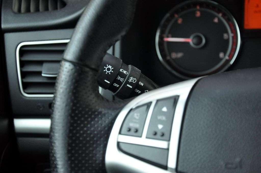 A więc po zajęciu miejsca w kabinie i zapięciu się, uwagę zwraca estetyka, prostota rozwiązań i brak przerostu formy nad treścią. Deska rozdzielcza jest bardzo prosta i czytelna - wszystko jest na swoim miejscu. No… prawie wszystko. Włączenie kierunkowskazów odbywa się „piętro wyżej” niż w innych samochodach, podobnie sterowanie wycieraczkami. Oba przełączniki sterczą pod kątem 45 stopni do góry z kolumny kierowniczej.