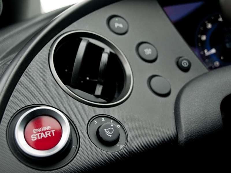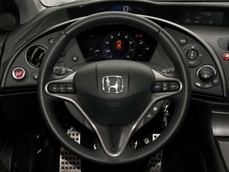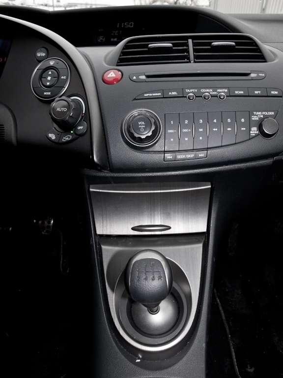 O wnętrzu Civica napisano już chyba wszystko podkreślając kosmiczny charakter deski rozdzielczej, niecodzienne ułożenie przełączników, ale i czytelność oraz łatwość ich obsługi. Niewątpliwe na pochwałę zasługuję duży centralnie umieszczony obrotomierz i idealnie leżący w dłoniach, skórzany wieniec kierownicy. Dominuje ciemne, twarde tworzywo, jednak Honda zdążyła nas już do tego przyzwyczaić – tak samo jak do nienagannego spasowania elementów i wysokiej jakości ich wykonania. Nietrudno obrać w Civiku idealną pozycję za kierownicą, znaleźć oparcie w wygodnym, bardzo dobrze wyprofilowanym fotelu i sięgnąć do znakomicie działającego lewarka skrzyni biegów. Nie można nie wspomnieć o poręcznym umiejscowieniu dźwigni hamulca ręcznego co sprawia, że chcę się z niego korzystać nie tylko przy ruszaniu pod górę.