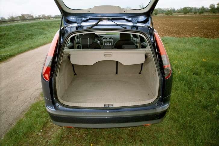 W stosunku do pierwszego Focusa zmniejszyła się pojemność przestrzeni bagażowej – z 520 do 482 litrów. Po złożeniu tylnych siedzeń obecnie otrzymujemy 1525 l, wcześniej 1580. Dla porównania Opel Astra kombi oferuje odpowiednio 505 i 1540 l, Peugeot 307 – 503/1770 l, Fiat Stilo – 510/1480 l, Renault Megane – 520/1600 l a Toyota Corolla – 402/1480 l. Przedział bagażowy jest dobrze wykończony i ma równą podłogę. Wygospodarowano w nim miejsce na dodatkowe schowki a przewożenie drobniejszych przedmiotów ułatwia siatka przytrzymująca. Długość przestrzeni bagażowej do oparć tylnych foteli wynosi 1042 mm a do oparć przednich foteli – 1669 mm. Możliwości przewozowe Focusa można dodatkowo zwiększyć dzięki relingom dachowym. Niestety wymagają one dopłaty.