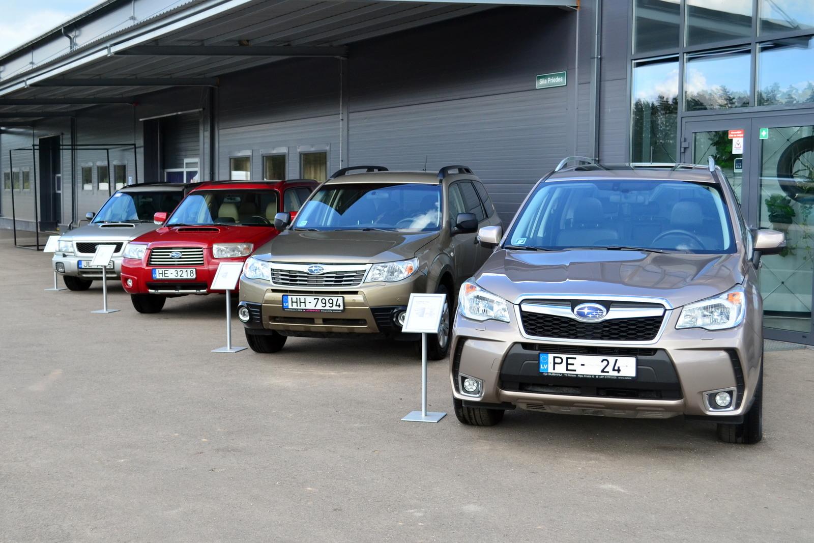 Samochody spod znaku plejady są mi dobrze znane, więc nie zdziwiło mnie, że przeszkody pokonały bez problemu. Zaskoczeniem było za to zachowanie obu testowych modeli na krótkim asfaltowym torze. W tej części prezentacji szczególną wagę położono na pokazanie możliwości zupełnie nowego modelu Forestera. Przy torze zaparkowane były egzemplarze wszystkich poprzednich generacji Leśnika, a jeden egzemplarz czwartej – odchodzącej – serii został nam udostępniony do bezpośredniego porównania.