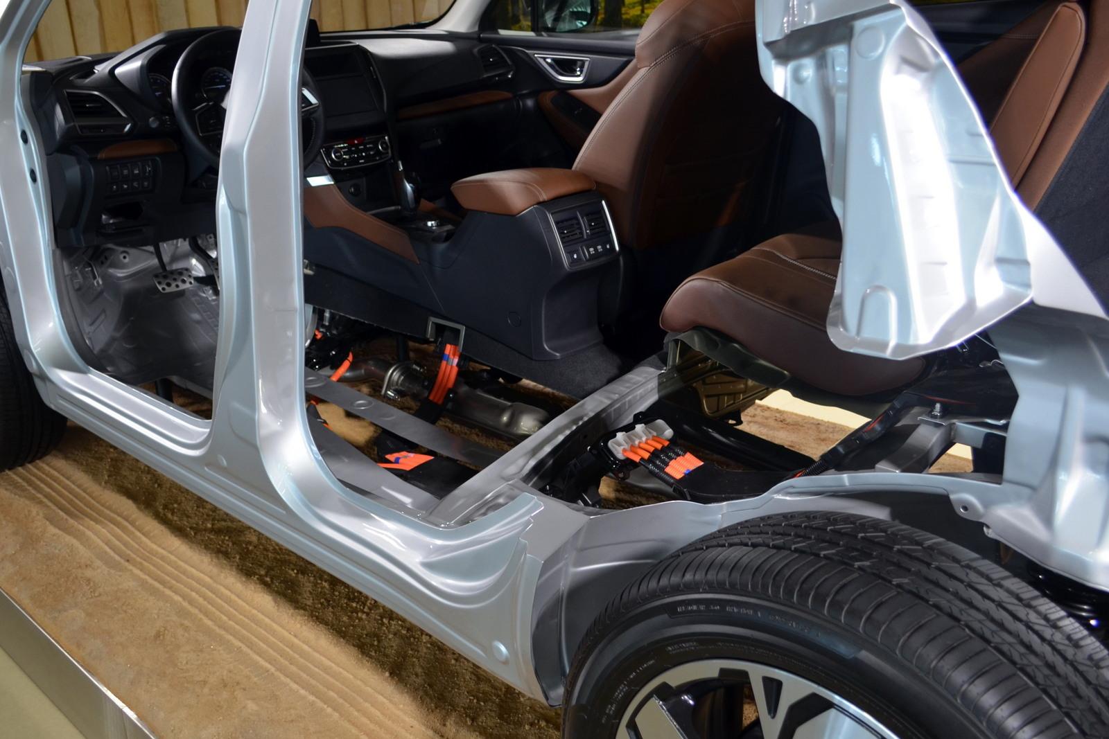 Subaru zawsze szczyciło się tym, iż za sprawą nisko położonego środka ciężkości, dzięki stosowaniu napędu na cztery koła oraz silników typu boxer, jest niedoścignione pod względem prowadzenia. W samochodach wyposażonych w napęd e-Boxer ma być jeszcze lepiej. Łączna masa układu elektrycznego to 110 kg, z czego na przednią oś przypada tylko około 50 kg. Dzięki temu poprawia się wyważenie samochodu. Umieszczenie silnika elektrycznego na skrzyni biegów, czyli pod podłogą – blisko ziemi i blisko środka ciężkości auta oraz zestawu baterii z tyłu dodatkowo obniża środek ciężkości całego pojazdu o 1%. Niby niewiele, ale każda kolejna taka zmiana i innowacja składa się na ogólną poprawę całości samochodu.
