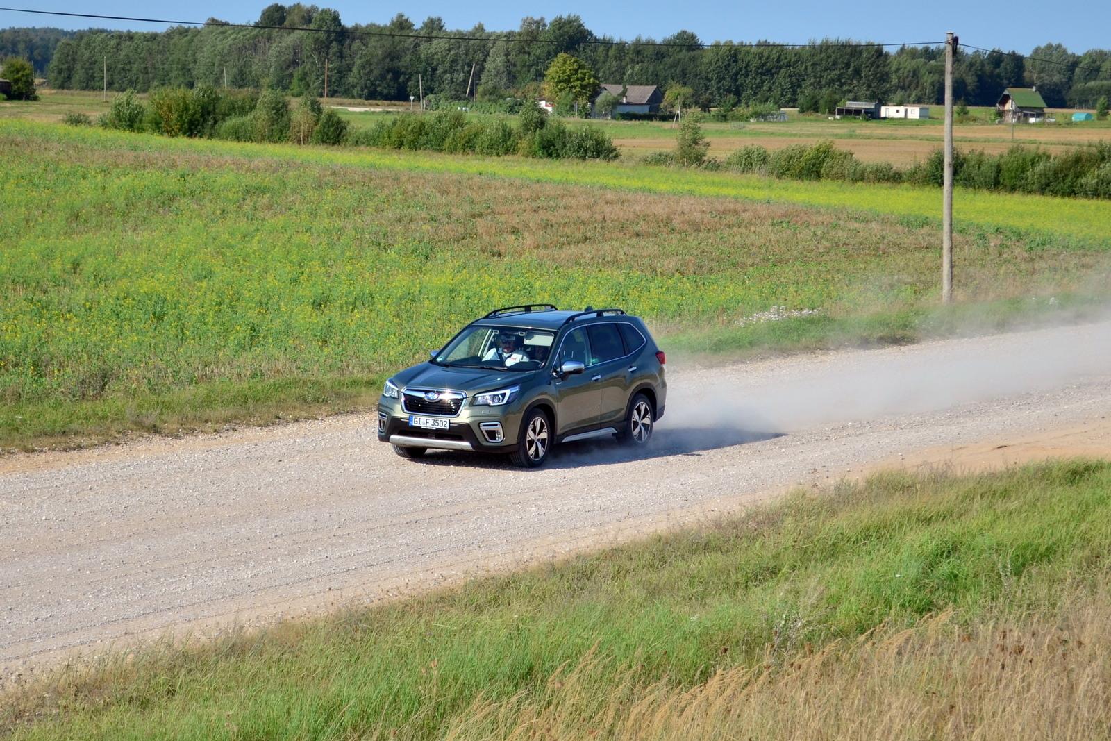 W trakcie przejazdu toru do pokonania był krótki slalom, ciasne zakręty, szybkie łuki, nawrót i jeden mocno wynoszący zakręt. Największą różnicę dawało się odczuć podczas jazdy w slalomie. Subaru deklaruje, że w stosunku do czwartej generacji, nadwozie najnowszego Forestera jest aż o 70% sztywniejsze. Z kolej dzięki zupełnie zmienionej platformie podwozia, na nowo zaprojektowane zawieszenie ogranicza wychylanie się pojazdu w zakrętach aż o 40%. To sprawia, że poza oczywistymi różnicami w wyposażeniu obu generacji, w praktyce inżynierom Subaru udało się osiągnąć ogromny postęp w zakresie prowadzenia na asfalcie. W porównaniu z ustępującym modelem, nowy Forester dużo mniej wychyla się w zakrętach, znacznie pewniej pokonuje slalom, a dzięki poprawionemu rozkładowi masy (między innymi poprzez rozlokowanie w podwoziu elementów układu hybrydowego e-Boxer) znacznie ograniczono podsterowność.