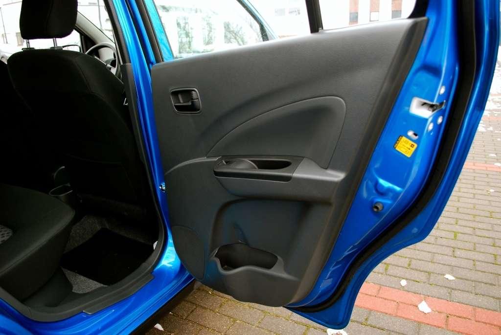 Jakość materiałów użytych do wykończenia wnętrza Celerio jest taka, jakiej możemy spodziewać się po samochodzie tej klasy. Jest tanio, lecz nie tandetnie. Na próżno szukać tu miękkiego plastiku, ale wykorzystanie różnych kolorów i faktur tworzywa dało dobry efekt wizualny. Spasowanie poszczególnych elementów nie budzi zastrzeżeń – podczas jazd testowych nie odnotowaliśmy żadnych niepokojących dźwięków. Na pochwałę zasługuje również ergonomia wnętrza. Bardzo czytelna tablica zegarów, a także wszystkie niezbędne regulatory w zasięgu dłoni i wzroku, pozwalają już pierwszego dnia obsługiwać Celerio bez potrzeby przyzwyczajania się do nowego samochodu. Dodajmy do tego schowek, półki na drobiazgi, kieszenie w drzwiach, uchwyty na kubki i już zaczynamy lubić Suzuki.