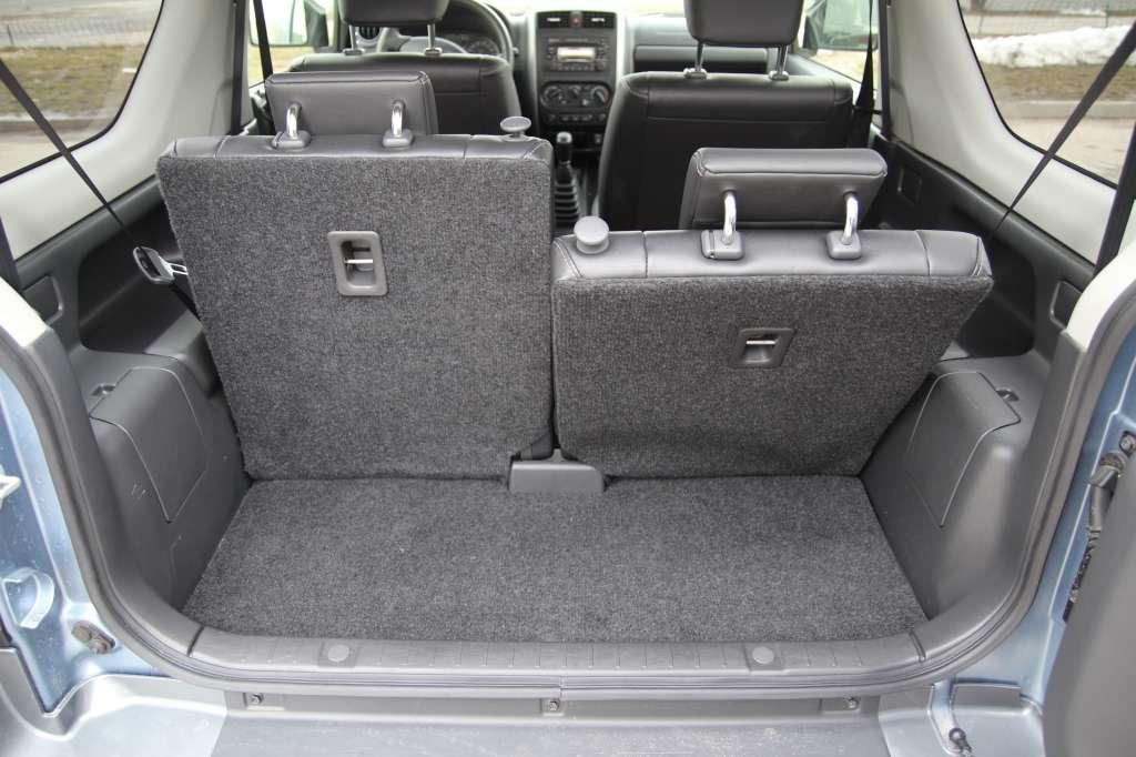 W trakcie codziennej eksploatacji dokuczliwa może okazać się mizerna liczba schowków i niewielka pojemność kieszeni bocznych. W zasadzie przydatna jest tylko skrytka przed pasażerem oraz 113 litrów przestrzeni za tylnymi fotelami. Tak, mowa o bagażniku... Jeżeli zajdzie konieczność przewiezienia większych przedmiotów, oparcia można złożyć w okamgnieniu, uzyskując ponad 800 litrów przestrzeni. Zabrakło jedynie płaskiej podłogi i wyższej ładowności - Jimny udźwignie tylko 360 kg.