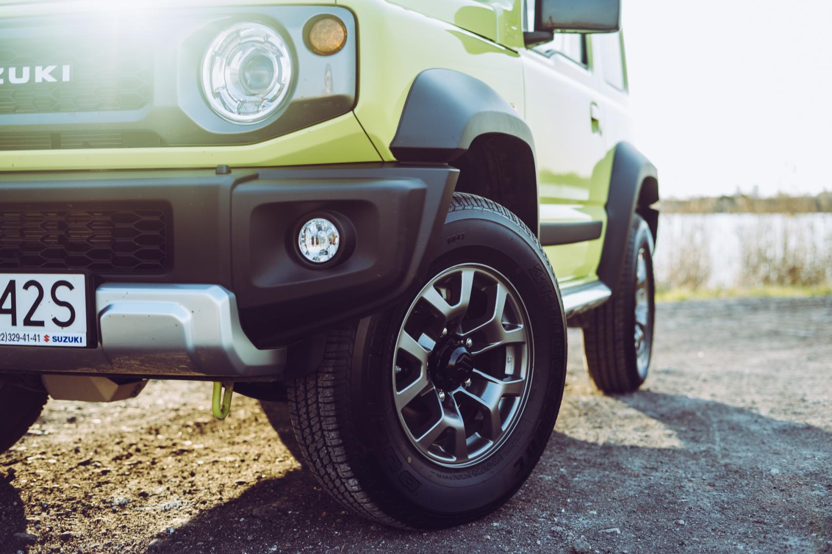 W porównaniu do poprzednika, poprawiły się jeszcze kąty – kąt natarcia wynosi aż 37 stopni, rampowy 28 stopni, a kąt zejścia aż 49 stopni. Prześwit wynosi 21 cm. To naprawdę imponujące wartości – a wbrew pozorom w terenie nie jedzie się tylko napędem i to właśnie te kąty i prześwit pozwolą Jimny’emu zajechać tam, gdzie nawet poważne SUV-y połamały by zderzaki albo zawisły na progach.