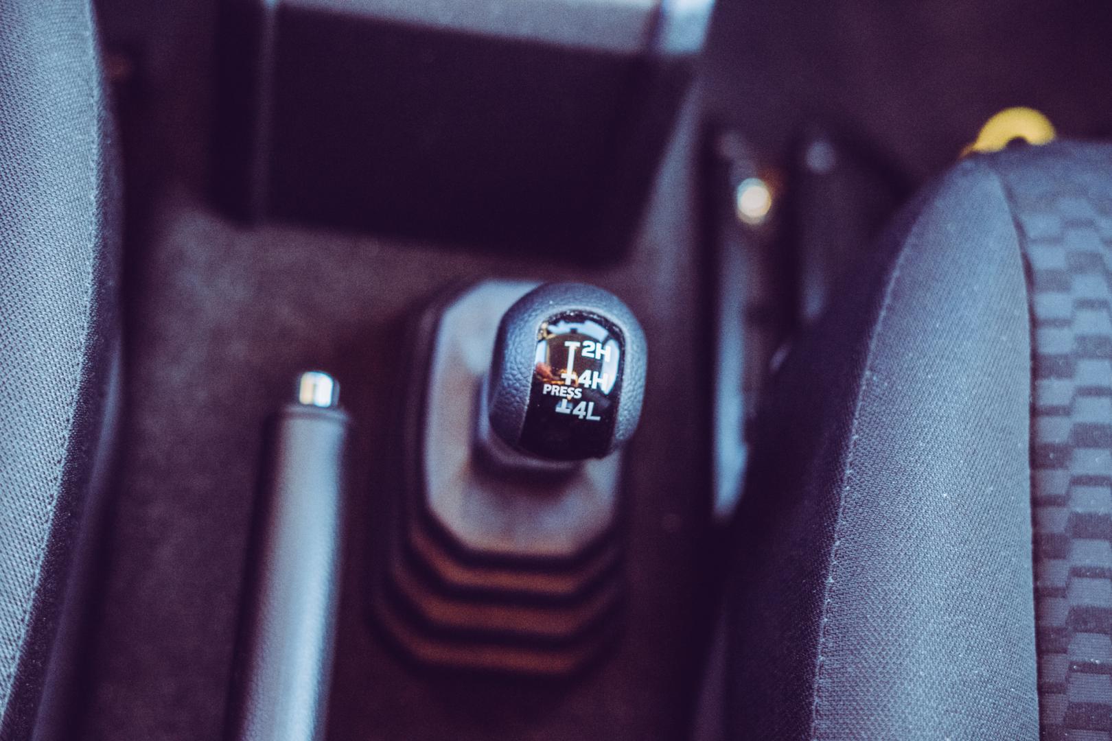To dość tani samochód, więc nie spodziewaliśmy się tu jakiegoś powalającego wykończenia. Jest surowo, raczej plastikowo i po prostu tak, żeby po wyprawie łatwiej było umyć to wnętrze. Ten charakter dodatkowo potęgują dwie dźwignie w skrzyni manualnej z karbowaną gumą u podstawy. Jak sprzed trzydziestu lat. Co najmniej.