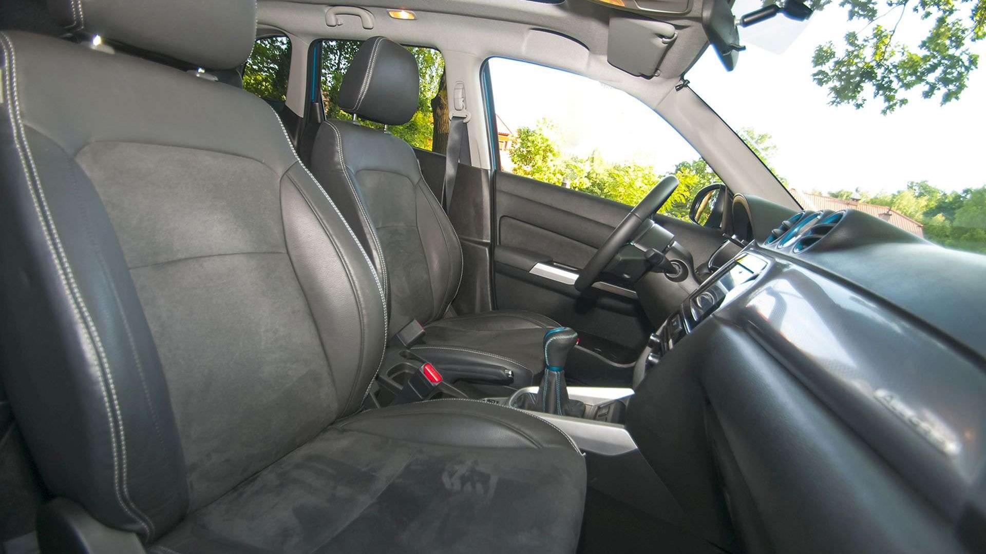 Vitara, jak przystało na crossovera, oferuje dość wysoko umieszczone fotele. Są one dość dobrze wyprofilowane, choć nieprzesadnie, adekwatnie do charakteru auta. Szkoda, że zabrakło podłokietników centralnych, nie dostaniemy ich nawet w najwyższych specyfikacjach. Za to miejsca w środku jest pod dostatkiem, nie brakuje nawet z tyłu, mimo znacznie krótszego niż w SX4 S-Cross rozstawu osi (250 cm). Nad głowami może go brakować tylko na tylnej kanapie, gdy zamówimy Vitarę z największym w klasie, dwuczęściowym szyberdachem. Otwiera się on w całości, jedna część chowa się klasycznie pod dach, druga wjeżdża na górę. Miłośnicy otwieranych dachów będą zachwyceni, niestety nie można go zamówić w każdej specyfikacji, a jedynie w najdroższej XLED AllGrip Sun (92 900 zł).