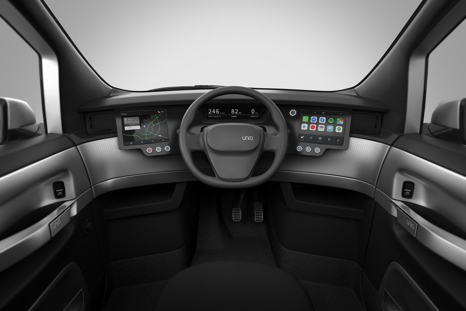 W ramach podstawowej wersji na pokładzie znajdziemy baterie o wielkości 12 kWh, o czym już wspominałem, a poza tym to ogrzewanie i centrum info-rozrywki, które zdaje się w całości oparte o system Google Android. Kokpit wygląda bardzo schludnie i ergonomicznie. Mimo zastosowania kilku ekranów nie wygląda jak jedna z półek w sklepie z elektroniką. Osobiście uważam, że deska rozdzielcza to zdecydowany plus dla Uniti One.