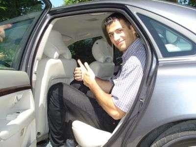 Pasażer na tylnej kanapie VOLVO poczuje się bardzo wygodnie. Miejsca na nogi i na głowe jest pod dostatkiem, co widać zresztą na zdjęciu!