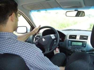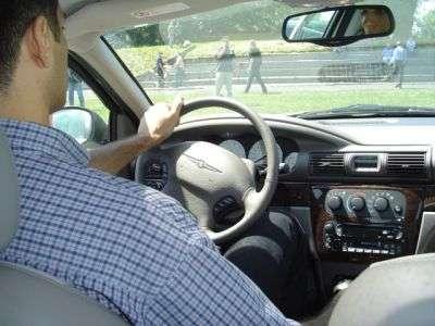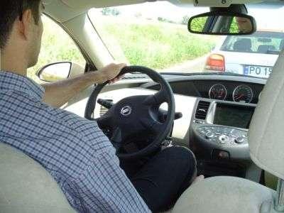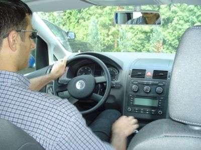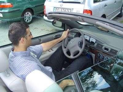 Po kilku minutach regulacji udało mi się zająć dość wygodne miejsce za kierownicą. Wrażenie psuło koło kierownicy którego nie można było oddalić od konsoli, przez co kierownica ograniczała nieco ruchy nogami. W połączeniu z bardzo wysoko wychodzącym pedałem sprzęgła, skutecznie utrudniało to kierowanie, ponieważ w momencie kiedy sprzegło zaczynało "łapać" kolano już się opierało o kierownicę. Plusem auta jest jego wysokość - nad głową kierowcy pozostaje jeszcze ok. 2-3cm. Wsteczne listerko troche ogranicza widoczność.
