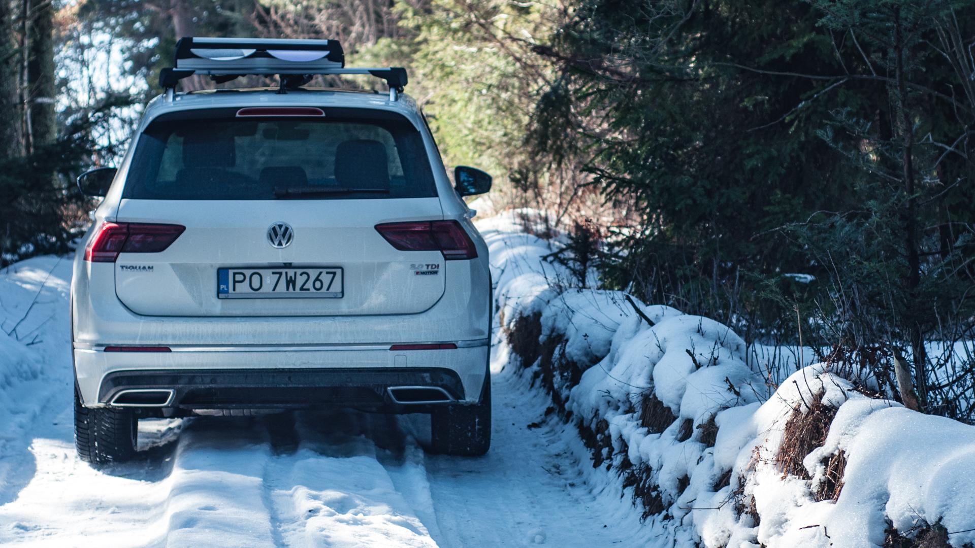 W jakich sytuacjach przydaje się SUV? Na pewno w korkach na Zakopiance, dzięki czemu widzimy wcześniej, co się stało i czy w ogóle na drodze znajduje się zator. Na pewno też wtedy, gdy musimy przejechać przez kilkunastocentymetrowy śnieg. Sam napęd ma jednak przede wszystkim znaczenie, kiedy droga zaczyna piąć się mocno w górę, a podłoże jest śliskie. Wtedy podstawą są dobre zimowe opony i napęd 4x4. Tiguan jeździ na Continentalach ContiWinter Contact TS830 P i sprawdzają się bardzo dobrze.