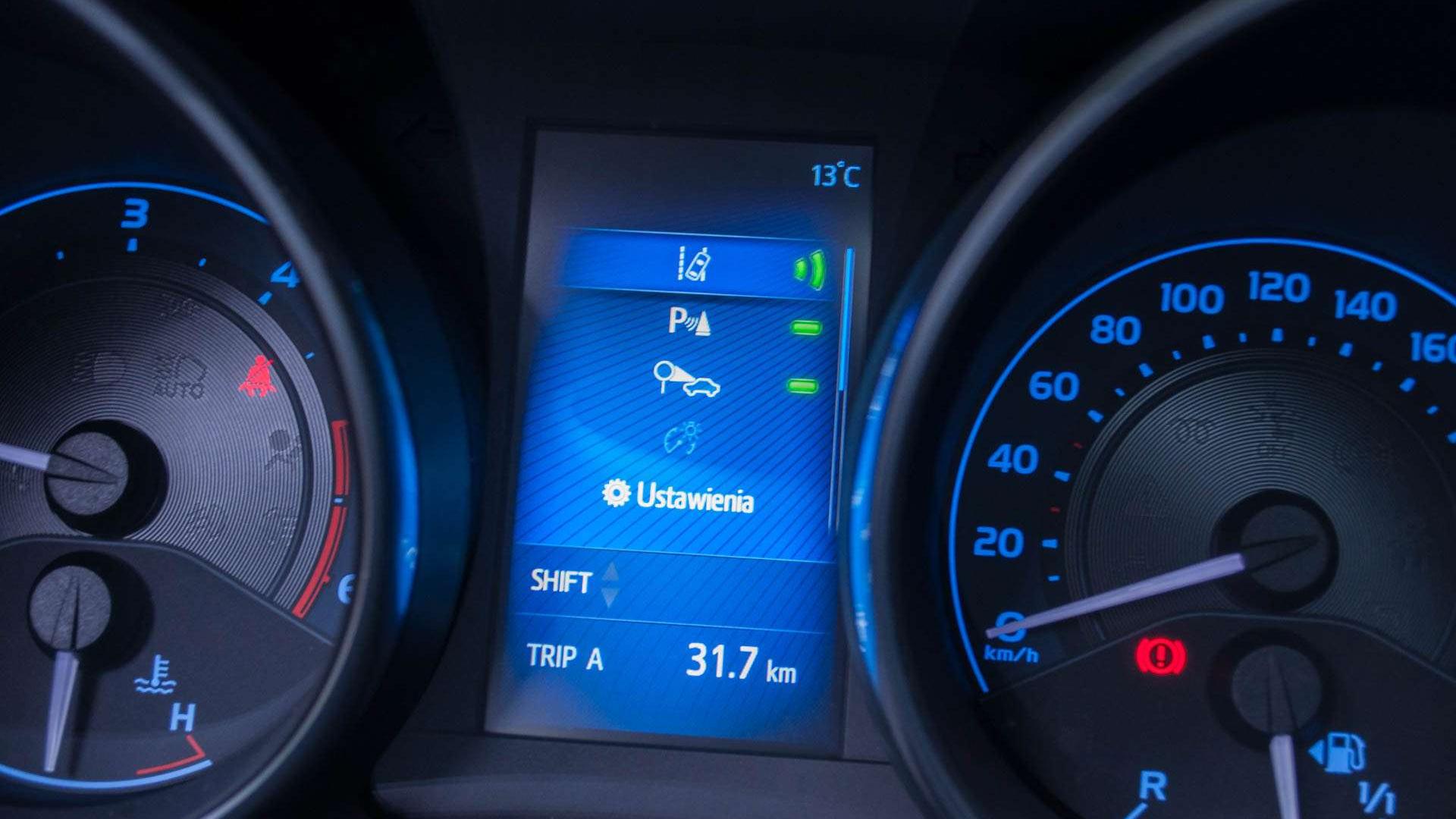 Przy okazji promocji odświeżonego Aurisa, producent często odwołuje się do nowych systemów bezpieczeństwa. Road Sign Assist, Lane-Departure Alert, Automatic High-Beam, Pre-Collision System. Road Sign Assist oznacza system czytania znaków, który może działa nieźle, ale zabrakło tu chyba pewnej integralności z nawigacją. Zdarzają się bowiem momenty, w których na komputerze pokładowym widniało inne ograniczenie, a na ekranie nawigacji już inne. Lane-Departure Alert to z kolei pasywny system zapobiegania zjeżdżaniu z pasa ruchu. Nie wykonuje on żadnych ruchów kierownicą, a jedynie ogranicza się do sygnalizacji niezamierzonego manewru. Pre-Collision System pozwala zatrzymać się przed przeszkodą, której kierowca nie zauważył lub znacząco wytracić przed nią prędkość. Sprawdziliśmy to rozwiązanie na torze testowym Toyoty. Przy prędkości 30 km/h i nie większej, system skutecznie zatrzymywał się przed postawioną makietą samochodu. Warunkiem działania systemu jest kompletny brak reakcji ze strony kierowcy, bo próba naciśnięcia gazu lub hamulca zostanie odebrana jako samodzielne ratowanie sytuacji. Inny warunek obejmuje fakt, że przed nami musi być samochód - istot ludzkich, póki co, „PCS” podobno nie rozpoznaje.
