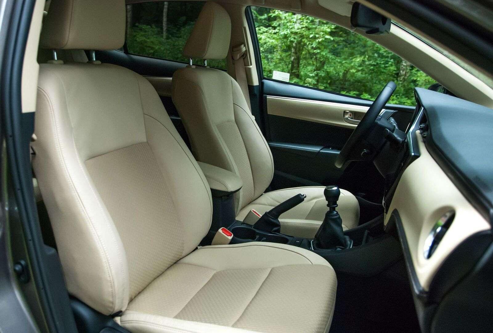 Poza nową stylistyką zewnętrzną, nowa Corolla otrzymała zupełnie nowe wnętrze. Mamy do wyboru dwie konfiguracje: ciemną tapicerkę połączoną z jasną deską rozdzielczą i detalami oraz wersję odwrotną. Do jazd testowych przypadł nam wariant z jasną półskórzaną tapicerką (dostępną w najwyższych wersjach wyposażenia) i ciemnymi akcentami. Choć wizualnie prezentuje się bardzo dobrze, materiały tapicerskie pozostawiają odrobinę do życzenia. Tapicerka ma dość żółty odcień (choć to akurat zapewne kwestia gustu) i mimo nowości sprawia wrażenie już lekko wysłużonej. Ciekawe jak będzie wyglądała po kilku latach normalnej eksploatacji.