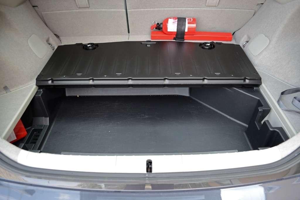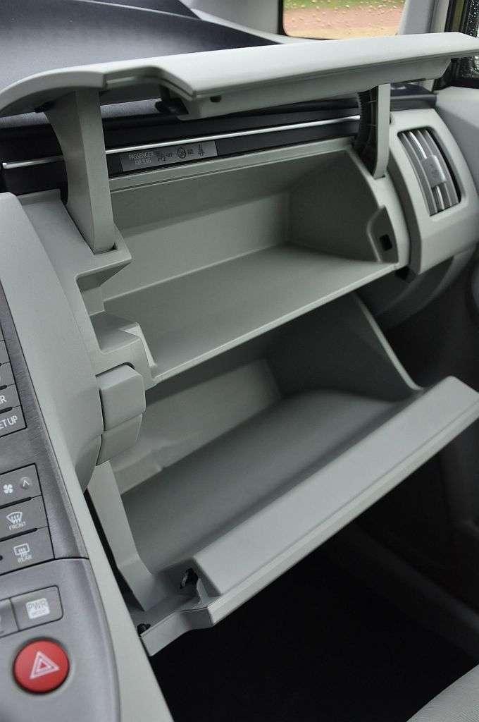 Priusowi brakuje trochę użytecznych schowków, więc telefon zmuszony byłem trzymać w uchwycie na kubek. Wróć. Prius to wszak minivan, a od tego segmentu aut oczekujemy znacznie większej użyteczności, a więc powiedzmy to inaczej: Priusowi bardzo brakuje schowków. Ten pod wiszącym tunelem jest efekciarski, ale kierowca sięga do niego z wielkim trudem.