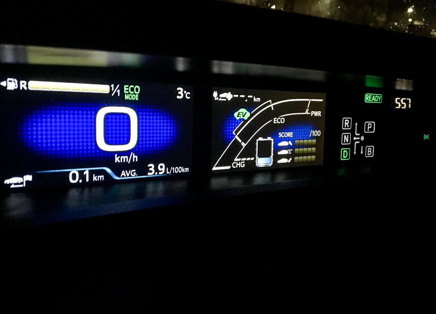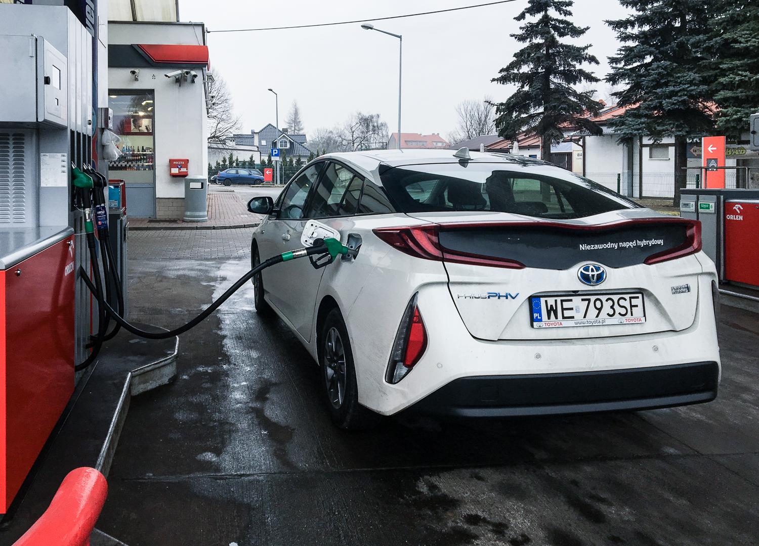 Naszą podróż rozpoczęliśmy od zatankowania samochodu do pełna w Katowicach – pełny bak Priusa PHV mieści tylko 43 litry benzyny. W samochodzie przez całą podróż włączona była klimatyzacja w trybie AUTO, a temperatura ustawiona na 21 stopni. Zdecydowaliśmy, że trasę pokonamy w 100% w trybie hybrydowym – na pustym akumulatorze, pozwalającym na jazdę bez użycia paliwa i bez jego doładowywania w trakcie jazdy.