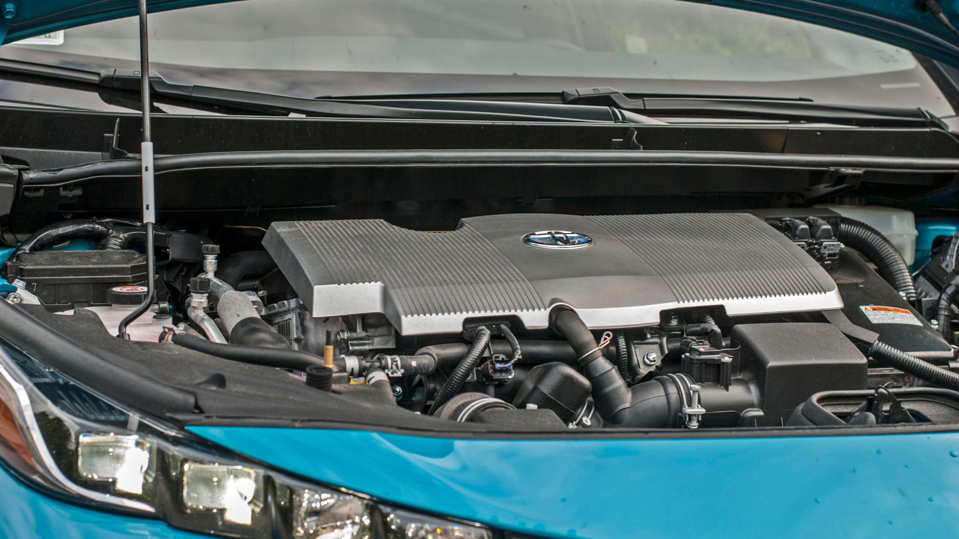 Wróćmy jednak do przyjemniejszych aspektów - do takich należy ergonomia i wykończenie samego kokpitu. Warto zacząć od konsekwentnie stosowanego szerokiego wyświetlacza w centralnej części deski rozdzielczej. To istne centrum dowodzenia, które dysponuje wszelkimi informacjami potrzebnymi zarówno do codziennej jazdy, jak i do wnikliwych badań poziomu spalania, eco-drivingu itd. Wygląda na coś skomplikowanego, jednak obsługa jest prosta i intuicyjna, w dużej mierze odbywa się za pośrednictwem kierownicy. Wieniec jest duży, obręcz gruba i wygodna. Panel centralny to znany z innych modeli Toyoty ekran dotykowy. Przyzwoita jakość obrazu i obsługa wymagająca dłuższej chwili na przyzwyczajenie. Dominuje wykończenie w fortepianowej czerni, jednak na kierownicy i poniżej tabletu centralnego zastosowano ciekawe półmatowe plastiki. Przyjemne dla oka i nielubiące się zbytnio z irytującymi odciskami palców. Poniżej prostego, obsługiwanego fizycznymi przyciskami panelu klimatyzacji znajdujemy krótką dźwigienkę zmiany biegów. Zamontowana pod dużym kątem jest wyjątkowo przyjemna w obsłudze, jednak pierwsze posunięcia trzeba śledzić na ekraniku, dla pewności użycia właściwego biegu. Tunel środkowy to spora przestrzeń z cupholderami i półeczką do indukcyjnego ładowania telefonu. Pod łokciem mamy natomiast wysoki schowek z niestandardowym otwieraniem.
