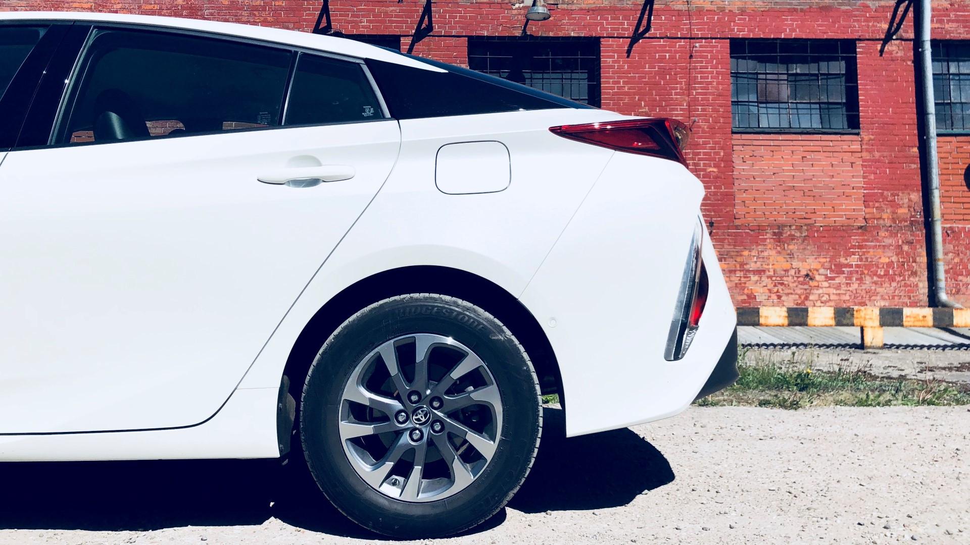 Niektórzy, patrząc na bryłę Priusa PHV, zachwycą się nad jego futurystycznością, a inni rozczarują – dokładnie z tego samego powodu. Przód auta jest zdominowany głównie przez lampy, które zostały podzielone na dwie części: poziomą i pionową. Ciekawie również prezentuje się czarny element pośrodku zderzaka.