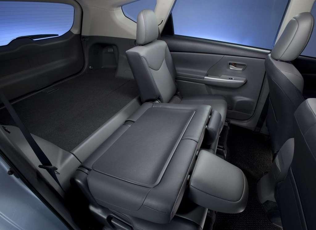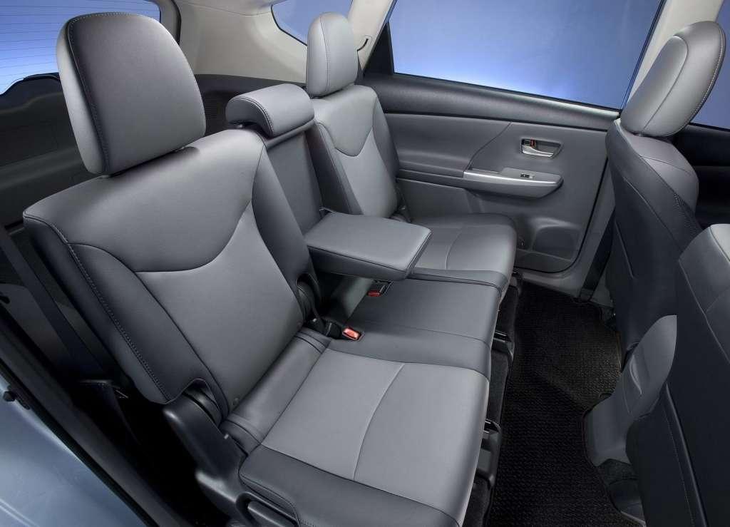 Kabina została zaprojektowana z myślą o rodzinach. Tylna kanapa jest dzielona i składana, z oparciem, którego części mogą być ustawiane pod różnymi kątami. Przed kanapą jest płaska podłoga, co gwarantuje wyższy komfort także osobie siedzącej na środkowym miejscu. Dostępne będzie jednak także inny wariant wnętrza. W drugim rzędzie ma mieć trzy niezależne fotele, a w trzecim dzieloną na pół kanapę. Powiększenie samochodu i zmiana kształtu nadwozia pozwoliły nie tylko zapewnić więcej miejsca podróżującym na tylnej kanapie, ale także o połowę powiększyć przestrzeń bagażową, w porównaniu z obecnym Priusem.