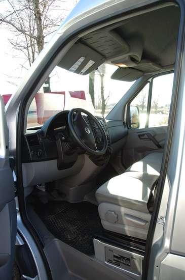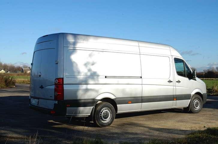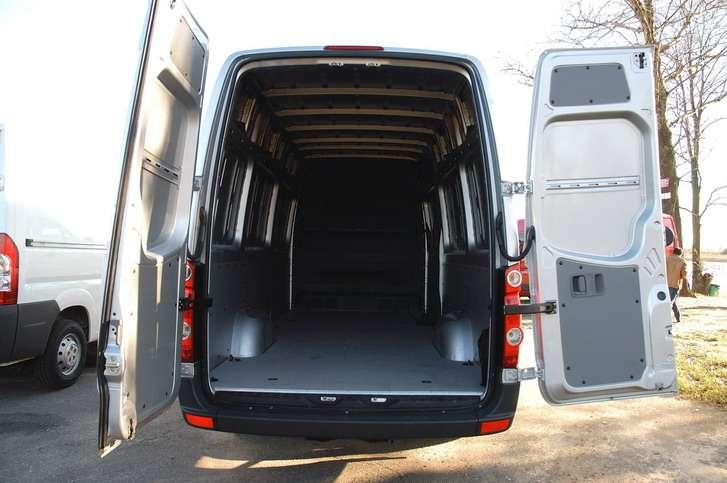 Wnętrze w typowy dla Volkswagena sposób staje się niemal wzorcem ergonomii. Dźwignia zmiany biegów oczywiście w wersji zminiaturyzowanej trafiła na kokpit centralny, a całe wnętrze wypełniły liczne uchwyty, półki i schowki. Zagospodarowano je nawet pod podłogą, a duży schowek umieszczono również pod podwójną kanapą pasażera. W prezentowanej podczas testów wersji z podwyższonym dachem przestrzeni nad głową kierowcy nie wypełniał dodatkowy schowek dostępny z ładowni, jak miało to miejsce w innych autach. Co prawda to zawsze jeden schowek mniej, za to pozostawiona nad głowami przestrzeń przydaje się zwłaszcza przy przemieszczaniu się po kabinie i ogólnie zwiększa poczucie przestronności wnętrza. Nowy Crafter, podobnie jak jego brat bliźniak Sprinter, oferowany jest oczywiście w licznych wersjach nadwoziowych. Podstawowy furgon otrzymał wersję o przedłużonym tylnym zwisie, dzięki czemu pojemność ładunkowa sięga 17 m3, mieszcząc nawet 7 standardowych europalet. W porównaniu do konkurentów pewnym archaizmem jest sposób blokady kąta otwarcia tylnych drzwi za pomocą tradycyjnego, metalowego pałąka. Rozwiązanie co prawda solidne i niezawodne, ale wymagające używania rękawic chroniących dłonie przed zabrudzeniem smarem. Za to poważnym argumentem przemawiającym za Crafterem jest jego bogate wyposażenie seryjne, obejmujące m.in. adaptacyjny system stabilizacji toru jazdy ESP, dostosowujący swoją pracę do bieżącego obciążenia i rozłożenia masy w pojeździe.