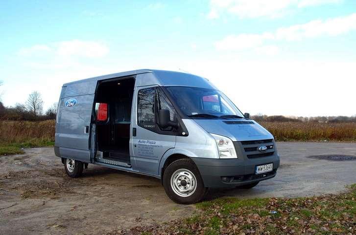 Wyróżnikiem Forda jest układ napędu – Transit występuje zarówno z napędem na koła przednie, jak i tylne, również w wersji z nadwoziem typu furgon. Co prawda wiąże się to z wyżej poprowadzoną podłogą, ale przy dużym obciążeniu pojazdu właściwości trakcyjne są zdecydowanie lepsze. Źródłem napędu w wersji przednioosiowej są nowej konstrukcji silniki Duratorq TDCi o pojemności 2,2 litra i mocy 85,110 i 130 KM (odpowiednio 250, 285 i 310 Nm maksymalnego momentu obrotowego). Tylnonapędowce czerpią energię z 2,4 litrowych silników o mocach 100, 115 i 140 KM (285, 320 i 375 Nm). Montowane są one wzdłużnie i współpracują z 6- biegową przekładnią (z wyjątkiem najsłabszej wersji 100-konnej, która ma skrzynię 5-biegową). Funkcjonalność ładowni nowego Transita pozostaje na znanym, wysokim poziomie, choć z jednym mankamentem – przegroda dzieląca ją od kabiny ma dużą wypukłość. Dość znacznie wnika ona do ładowni i przez to ogranicza możliwość np. umieszczenia wysokiej palety czy kartonów bezpośrednio przy ścianie czołowej.
