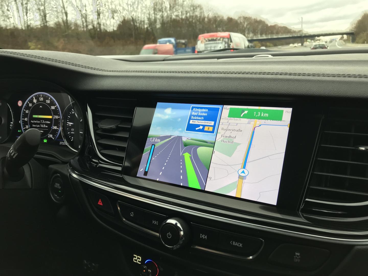 Opel nie ustępuje także pola innym producentom, jeśli chodzi o wprowadzanie najnowocześniejszych systemów multimedialnych w swoim topowym modelu Insignia. Niezależnie od wybranej wersji – Grand Sport, Sports Tourer, Country Tourer czy GSi, system ten dostępny jest w opcji (wyposażenie: Enjoy oraz Innovation) lub w standardzie, w wersji Elite. Nowy system multimedialny Opla cechuje nie tylko bardzo ergonomiczny wygląd zaprojektowany jako interfejs człowiek-maszyna (HMI), sterowanie „tabletowe” z rozpoznawaniem gestów i oczywiście sterowanie za pomocą przycisków z kierownicy, ale także szereg funkcji, takich jak: płynna zmiana skali i przewijanie, informacje na bieżąco o ruchu drogowym, aktualne ceny paliw czy też bardzo pomocna – dostępność miejsc parkingowych z uwzględnieniem wybranego celu podróży oraz oczywiście aktualizacja map online. Ciekawostką jest szereg rozwiązań wspomagających funkcję „Live Traffic”, która dostarcza cennych informacji o ruchu drogowym w czasie rzeczywistym. Informacje te mogą być bowiem przesyłane w trybie łączności z Internetem (via smartfon), za pomocą protokołów TPEG przez DAB/DAB+ (TPEG to nowej generacji protokół do przesyłania komunikatów drogowych), a nawet – jak podaje Opel – poprzez transmisje TMC (Traffic Message Channel). Dzięki płynnym aktualizacjom pokonywanej trasy o zdarzenia drogowe, dodatkowo wspieranym przez informacje z danego odcinka z przeszłości, system dużo precyzyjniej jest w stanie obliczyć czas przejazdu. Multimedia Navi Pro uwzględnia aż cztery aktualizacje map rocznie, które mogą być przeprowadzone online.