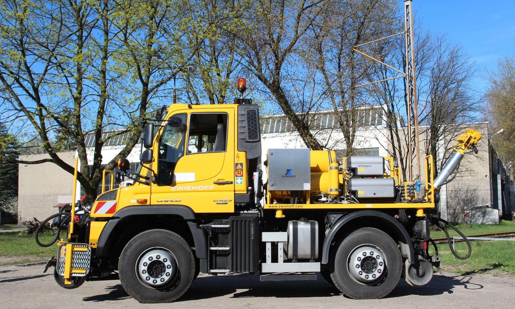 Unimog w kolejowej specyfikacji nadaje się nie tylko do przetaczania wagonów. Doposażony w odpowiednie moduły staje się pługiem śnieżnym, zamiatarką, żurawiem, podnośnikiem koszowym, montażową, podcinarką do gałęzi, kosiarką czy pojazdem do czyszczenia tuneli oraz innych elementów infrastruktury. Na tym nie koniec. Dostępny jest osprzęt do zgrzewania lub szlifowania szyn, ultradźwiękowej kontroli torowiska, prac załadunkowych czy przykręcania szyn. Unimog może samodzielnie dostarczyć sobie niezbędne materiały – w wagonie lub przyczepie szynowo-drogowej. Trudno wyobrazić sobie bardziej wszechstronne narzędzie na kołach.