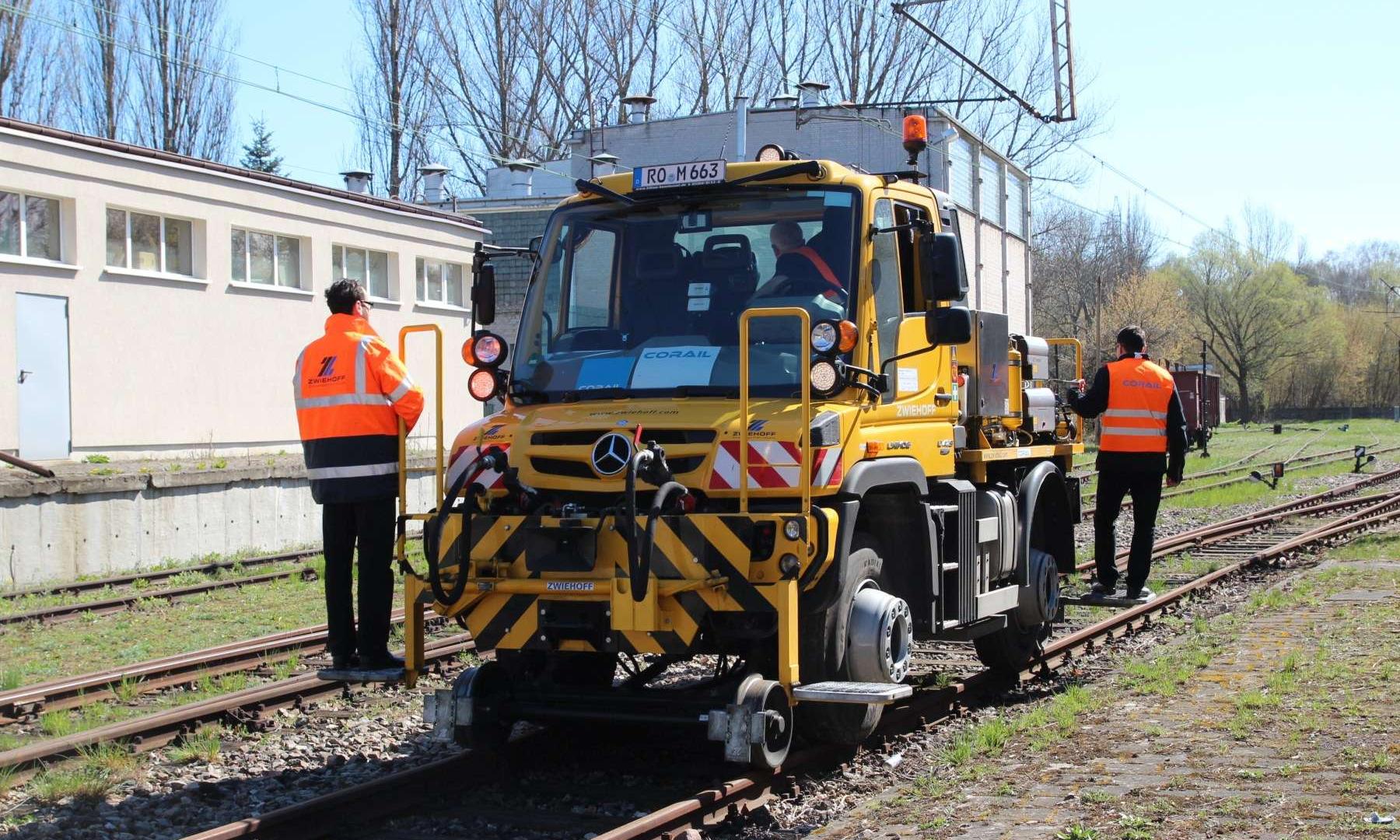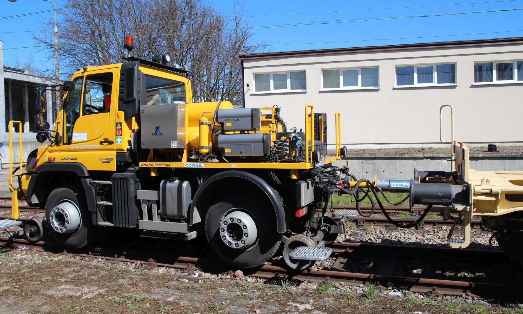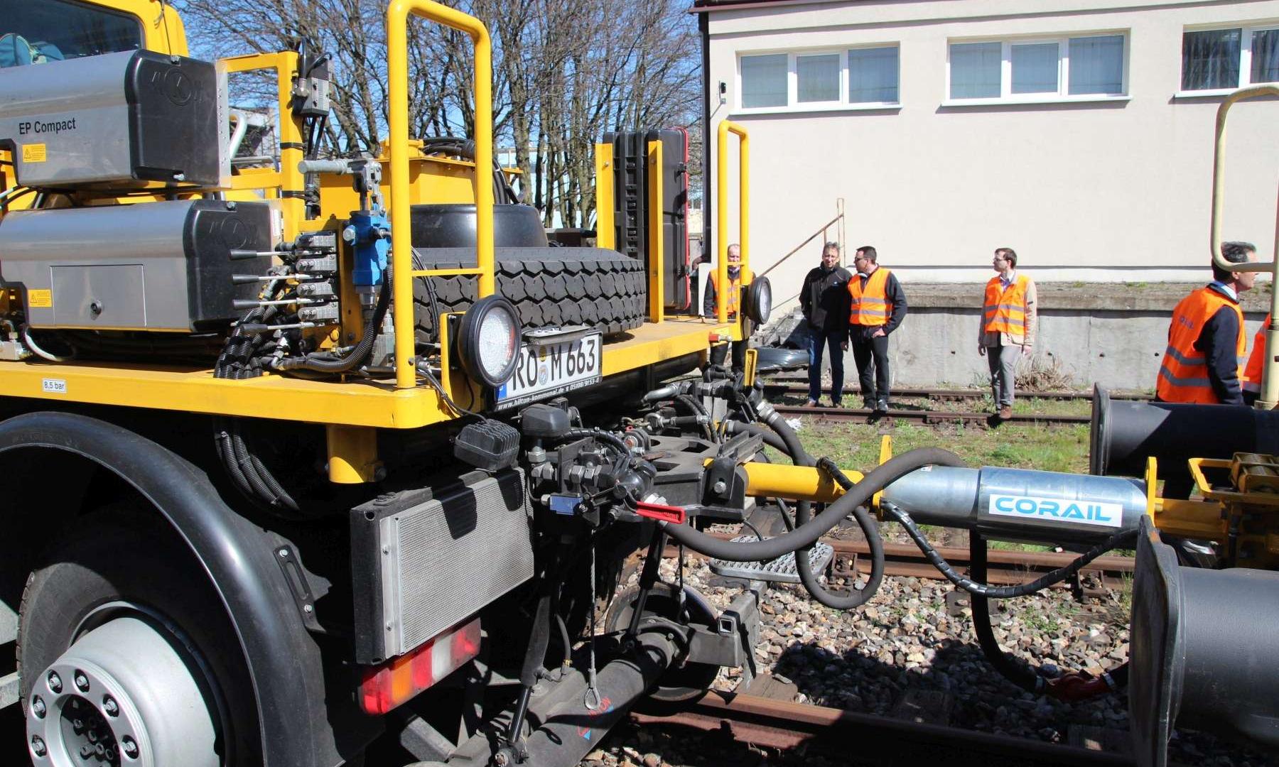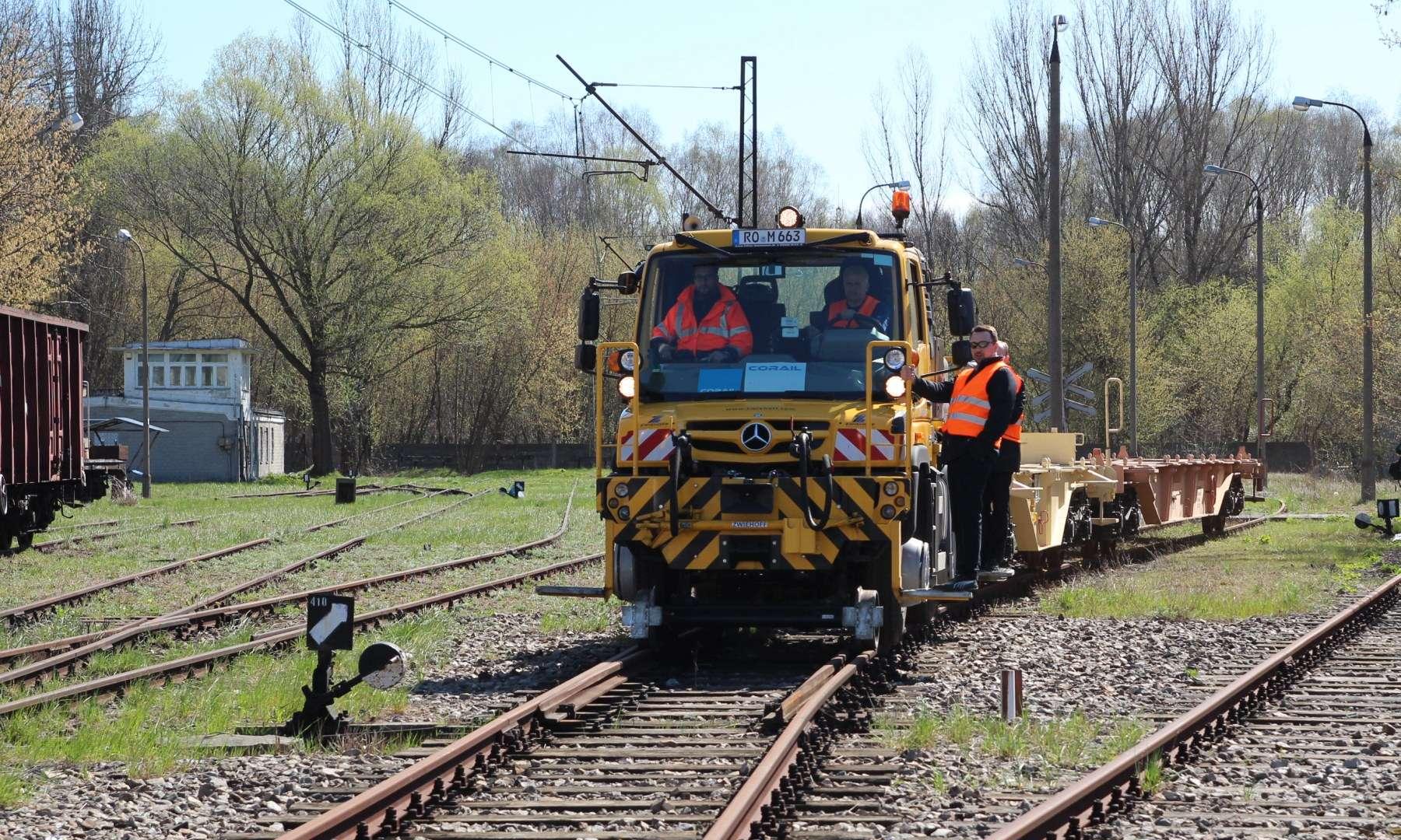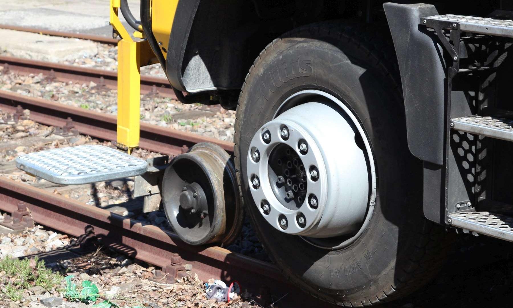 Na pierwszy rzut oka wygląda jak ciężarówka z masą osprzętu. Wprawne oczy z pewnością wychwyciły stalowe koła za przednią i tylną osią. To mechanizm prowadzący, który pozwala na jazdę wzdłuż szyn kolejowych. W jakim celu? Prezentowany Unimog jest pełnoprawnym substytutem lokomotywy manewrowej. Wystarczy kilka minut i prosty odcinek torów o długości pięciu metrów, by samochód „wpasował” się w kolejową infrastrukturę.