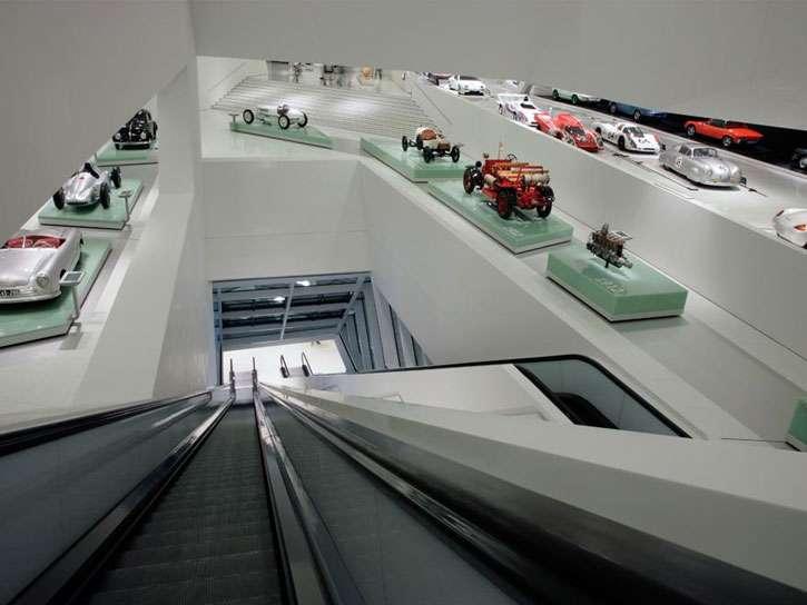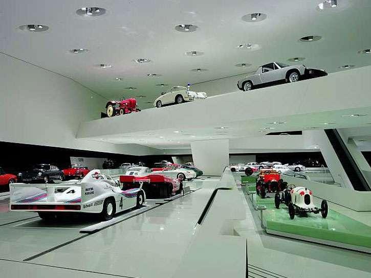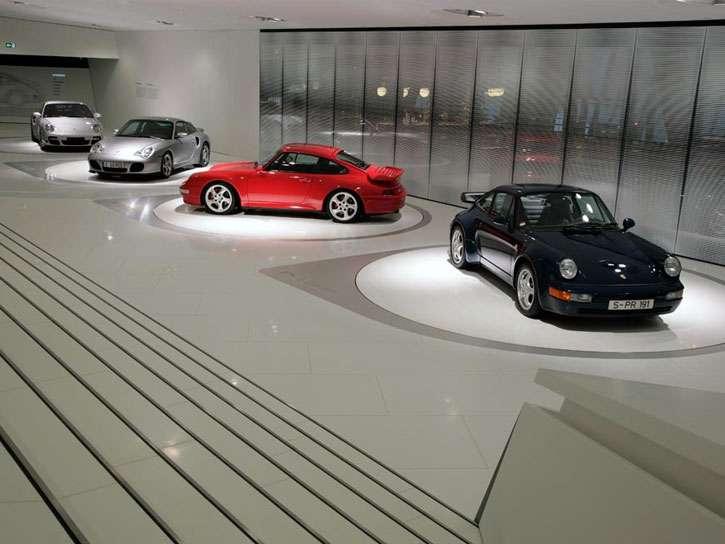 Koncepcja wystawiennicza stuttgarckiego projektanta wnętrz muzealnych profesora HG Merz świadomie rezygnuje z zainscenizowanej prezentacji z efektami widowiskowymi. Samochody sportowe bronią się same. „Eksponaty takiej jakości nie potrzebują żadnego drogiego opakowania" – podkreślił profesor Merz. „W Zuffenhausen stoją one jak rzeźby w białej galerii. W tej zredukowanej scenografii zwiedzający może zostać sam na sam z pojazdami i ze swoimi własnymi uczuciami."