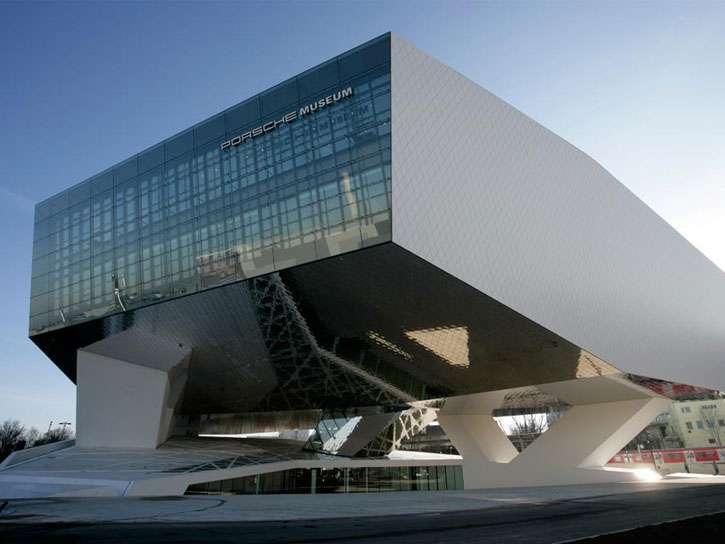 Muzeum, utrzymane w całości w kolorze białym, którego bryła opiera się tylko na trzech podporach i wygląda przez to jakby unosiła się w powietrzu, ze względu na swoją odważną architekturę już podczas budowy wzbudzało zainteresowanie i podziw specjalistów. Roman Delugan z wiedeńskiego biura architektonicznego Delugan Meissl Associated Architects, autor projektu wybranego w styczniu 2005, od samego początku w centrum uwagi postawił gości zwiedzających muzeum: „Architektura nie powinna być widziana tylko jako obiekt, lecz musi oddziaływać także na ciało i zmysły człowieka. Dzięki temu muzeum kosmos Porsche będzie w zasięgu ręki każdego."