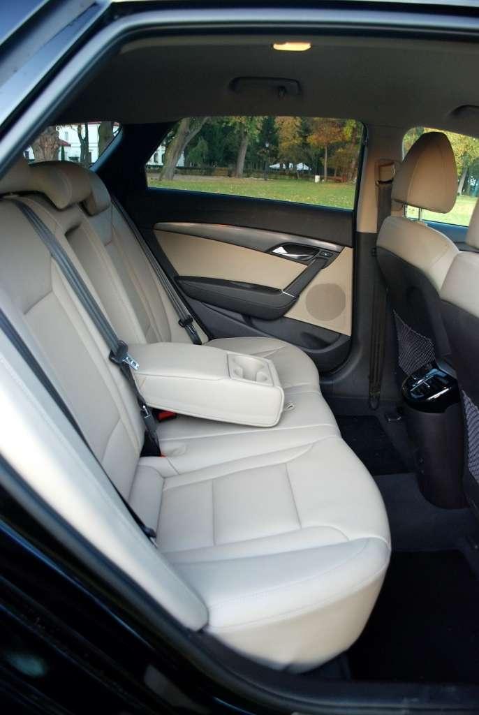 Prawie wszyscy twierdzą, że mój sportowy design 4,7 metrowego auta nie wpływa negatywnie na komfort we wnętrzu, praktyczność kabiny czy jej ładowność. Duży rozstaw osi (2770 mm) i całkowita szerokość (1815 mm) pozwoliły na wygospodarowanie we wnętrzu dużej ilości miejsca. Niektórzy mówią nawet, że oferuję największą w swojej klasie przestrzeń dla pasażerów na przednich fotelach. Nie zaglądałem przez szybę do moich kolegów z konkurencji, ale jestem w stanie w to uwierzyć. Moje miejsca z tyłu również rozpieszczają podróżnych – nikt się tu nie gnieździ, a możliwość ustawienia kąta pochylenia oparcia (26 lub 31 stopni) powoduję, że pasażerowie nie są skazani na „widzimisię” projektantów i mogą dostosować swoje miejsce podróży do własnych potrzeb. Skórzana tapicerka jest miła w dotyku, a ogrzewane i wentylowane siedzenia przednie są czymś, co zebrało dużą liczbę pozytywnych komentarzy. Co prawda znaleźli się malkontenci narzekający na słabe trzymanie boczne, ale jeszcze się taki nie urodził, co by wszystkim dogodził. Jednak wszystkie marudy były zgodne co do jednego – nikt nie spodziewał się, że mam tak pojemny (553/1719 litrów) i wygodny w załadunku (poziom podłogi 592 mm od ziemi) bagażnik, a podwójnych szyn do utrzymania załadowanego bagażu życzyliby sobie wszyscy w swoich autach.