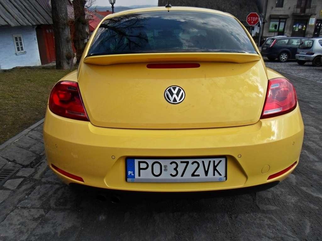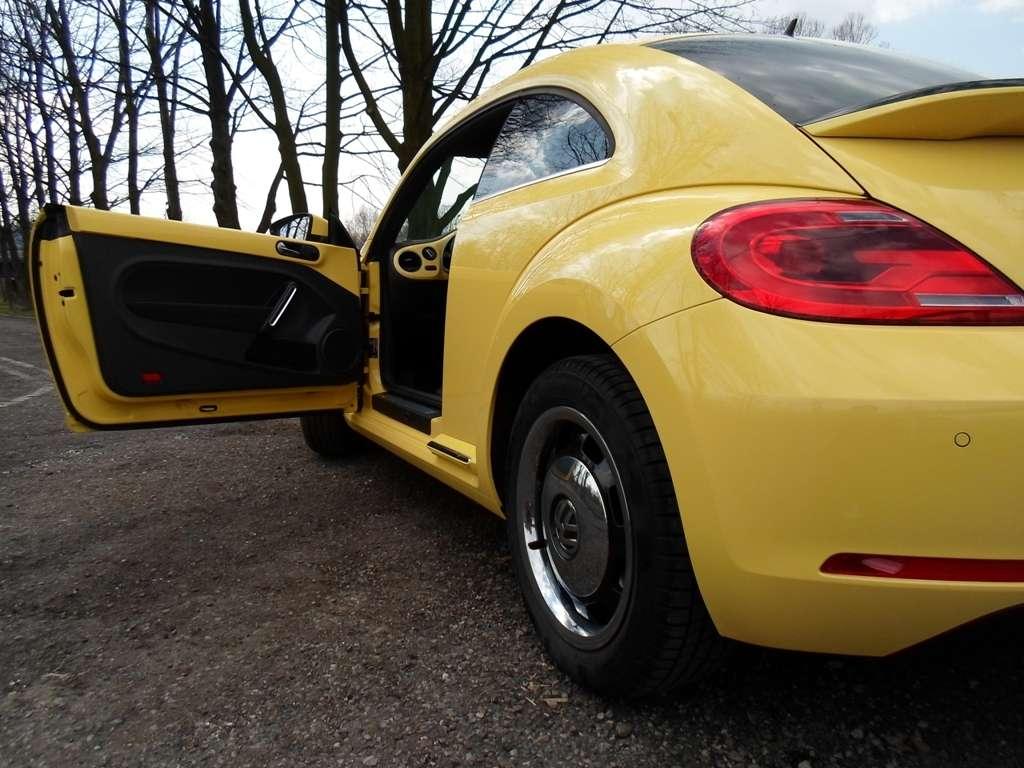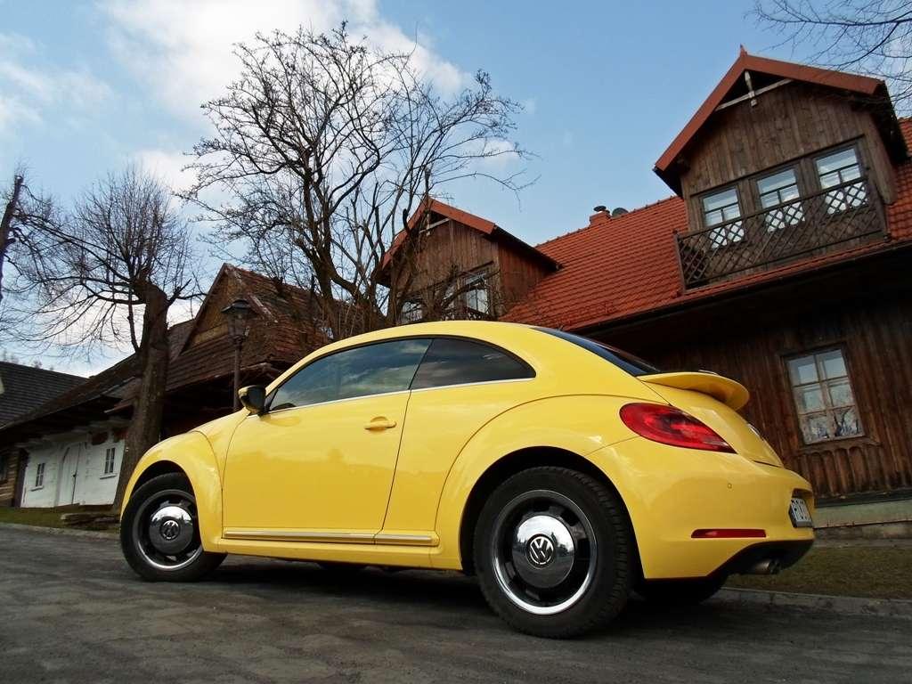 Czy wygląd nowego Beetla jest wystarczająco "vintage"? Nawiązań do ponadczasowego wyglądu "dziadka" nie brakuje. Wyraźnie odcięte i nadęte błotniki, na których umieszczono lampy oraz garbata sylwetka przywodzi na myśl tylko jeden model. W porównaniu z New Beetle'm samochód został obniżony, poszerzony i zyskał na dynamice. Zgubiono "jajowaty" kształt nadwozia poprzez poprowadzenie linii dachu bardziej płasko i moim zdaniem jest to strzał w dziesiątkę. Beetle sięga mocniej do korzeni, ale paradoksalnie wygląda nowocześniej. Gdy widzę oryginalnego, starego Garbusa zawsze przystaje na moment, a z moich ust wydobywa się głębokie westchnięcie. W jego nieco niezgrabnej sylwetce jest więcej uroku, niż w Marylin Monroe z podwianą sukienką. Beetle już tak mocno nie chwyta za serce, ale nie mogę odmówić mu urody. Sprawdzany przeze mnie egzemplarz miał karoserię w żółtym kolorze. Uwierzcie mi, trudno poruszać się tym samochodem i pozostać niezauważonym. Sposób na wyróżnienie się z tłumu? O, tak!