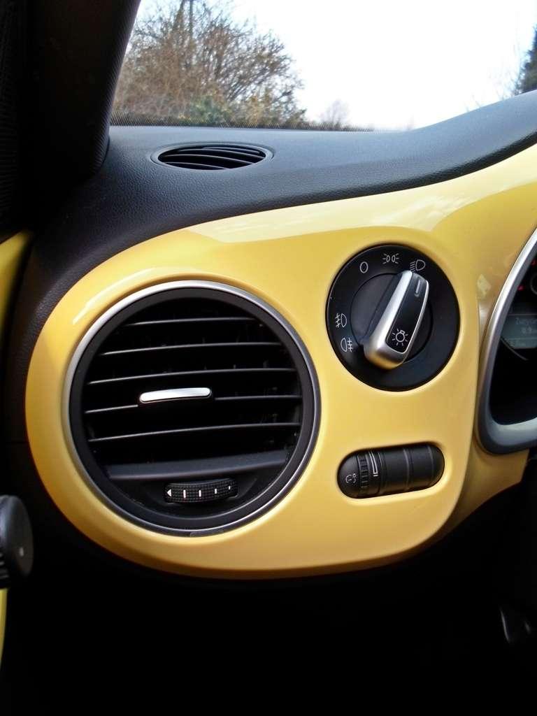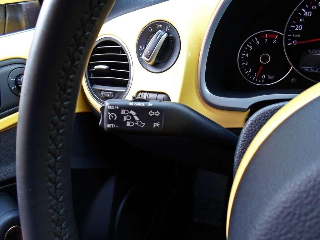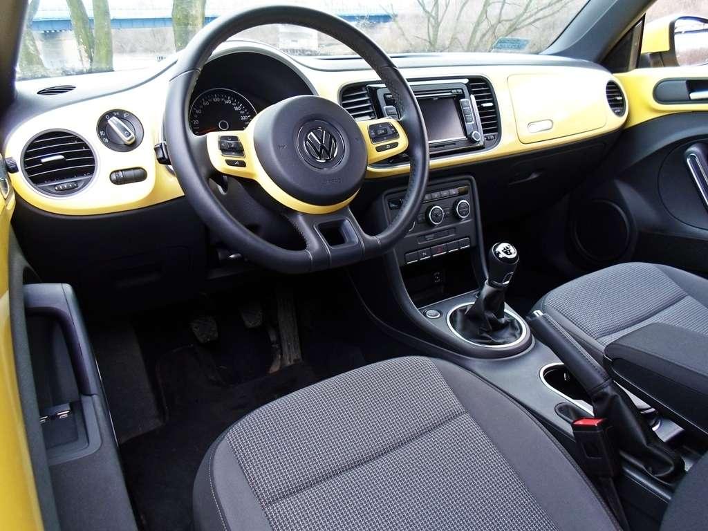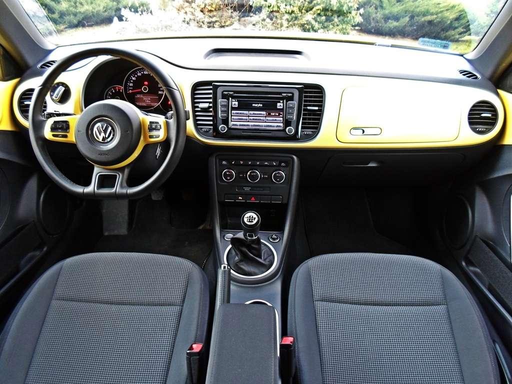 Pozycja za kierownicą jest znakomita. Siedzi się nisko, prawie jak w samochodzie sportowym, jednak fotele, choć wygodne, dają bardzo małe trzymanie boczne. O ile plecy utrzymywane są w fotelu dość skutecznie, to pośladki kierowcy i pasażera mają zbyt dużą swobodę ruchów. Kierownica ma ogromny zakres regulacji, ale jeśli pozwolicie mi pomarudzić powiem, że jej wieniec jest odrobinę za cienki. Beetle choruje na pewną dolegliwość znaną z samochodów coupe. Pas bezpieczeństwa znajduje się daleko za fotelem. Przy moim wzroście wynoszącym nieco ponad 190 centymetrów jest to jeszcze do przeżycia, ale jeśli siądzie tu ktoś poniżej 1,7 metra to, by zapiąć pas będzie musiał najpierw zrobić porządne rozciąganie lewego ramienia. Rozwiązanie w sam raz na senne poranki, jeśli tylko sięganie do tyłu zgracie z ziewaniem. Jednak sądzę, że prędzej czy później, zacznie was to denerwować.
