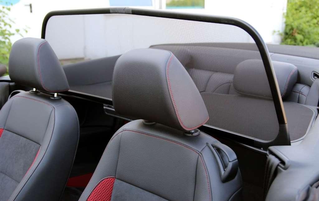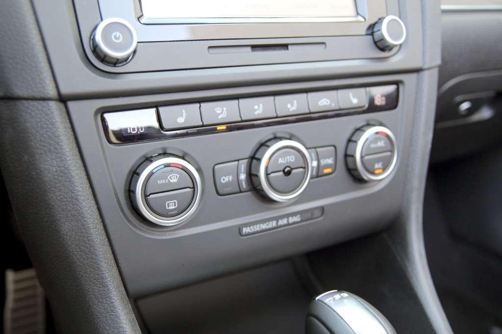 Po założeniu windshota i podniesieniu bocznych szyb ruch powietrza na wysokości głów kierowcy i pasażera praktycznie zamiera. Jeżeli kabriolet został dobrze zaprojektowany, niestraszne będą mu niewielkie opady deszczu – struga powietrza przeniesie krople za samochód. Tak też wygląda sytuacja w Golfie. Ciekawą funkcją są odrębne ustawienia wentylacji dla otwartego i zamkniętego dachu. Jeżeli przy zamkniętym ustawiliśmy 19 stopni, a przy otwartym 25 stopni, elektronika zapamięta parametry i przywróci je po zmianie położenia dachu.