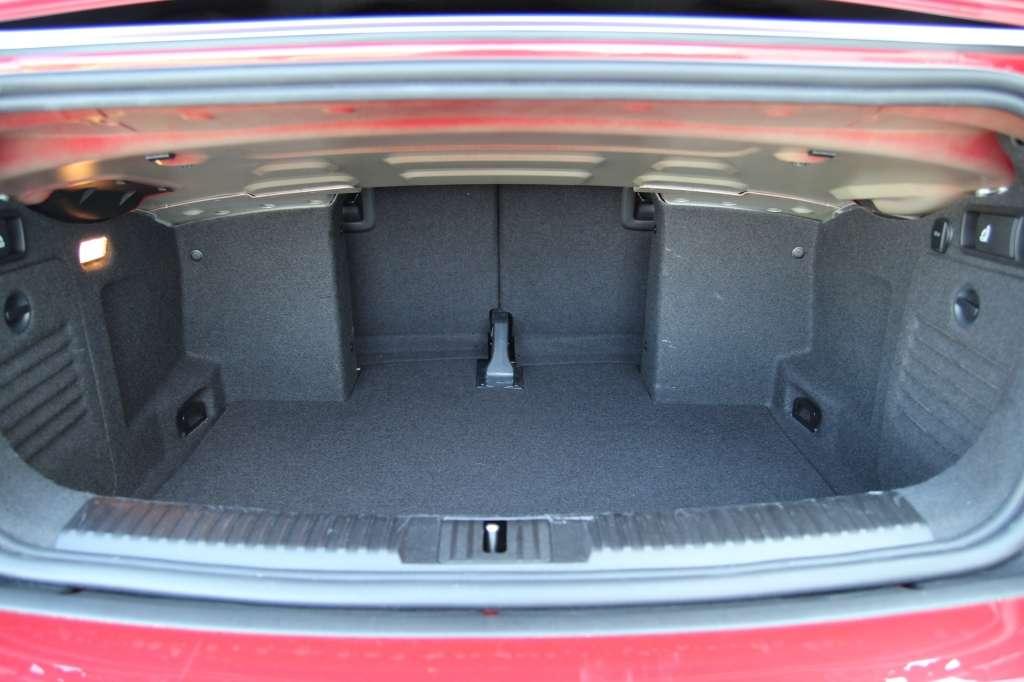 Złożenie dachu nie ogranicza ilości miejsca na bagaż. Brezent chowa się za tylnymi zagłówkami i jest oddzielony od kufra metalową grodzią. Bagażnik ma 250 litrów pojemności. Sam wynik jest akceptowalny (wiele aut segmentu A i B legitymuje się podobnymi wartościami), ale trzeba pamiętać, że w Cabrio do dyspozycji mamy niską i niezbyt regularną przestrzeń. Jak by tego było mało, klapa ma skąpe rozmiary. Z pełnym wykorzystaniem przestrzeni bagażowej problemów nie będą mieli chyba tylko amatorzy trójwymiarowego Tetrisa... Golf bez trudu poradzi sobie natomiast z dłuższymi przedmiotami. Albo złożymy tylne oparcia (dzielone indywidualnie), albo otworzymy dach i przewieziemy bagaż w kabinie...