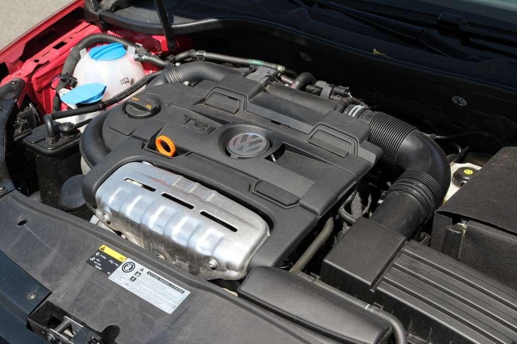 Prezentowany samochód został wyposażony w podwójnie doładowany silnik 1.4 TSI. 160 KM, 240 Nm oraz 7-stopniowa przekładnia DSG czynią jazdę niezwykle przyjemną. Jeżeli zajdzie potrzeba, motor sprawnie „wygrzebie” się nawet z 1600 obr./min. Kiedy kierowca postanowi kręcić silnik aż do czerwonego pola na obrotomierzu, sprint od 0 do 100 km/h potrwa 8,4 s. To więcej niż wystarczający wynik w kabriolecie - wiele z nich i tak krąży w spacerowym tempie po nadmorskich bulwarach. Co ważne, osiągi nie są okupione wysokim spalaniem. W trasie, w zależności od warunków i stylu jazdy, motor 1.4 TSI pobiera 5-7 l/100km, natomiast w mieście zadowala się 8-10 l/100km. Szkoda, że motor brzmi przeciętnie - także pod obciążeniem.