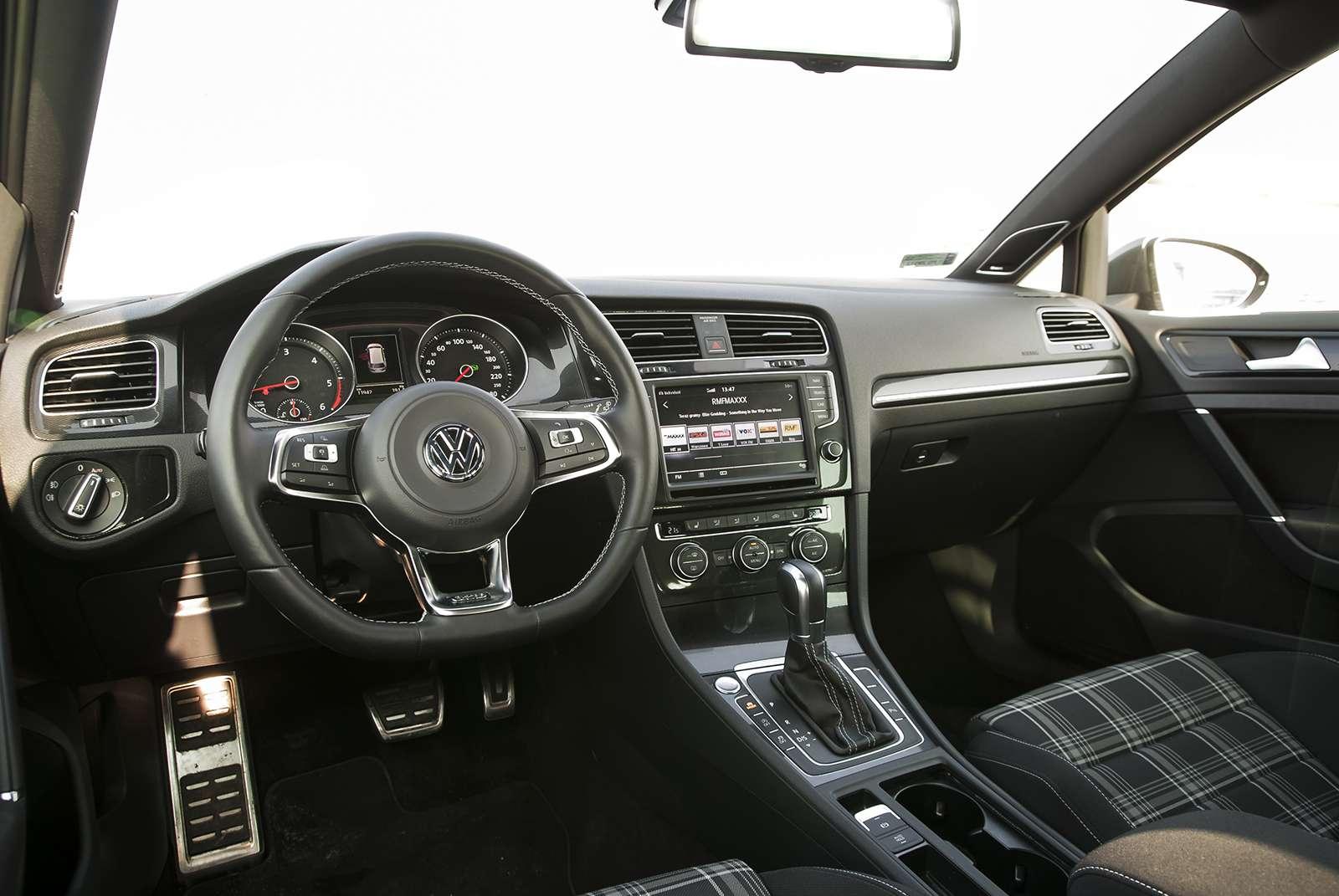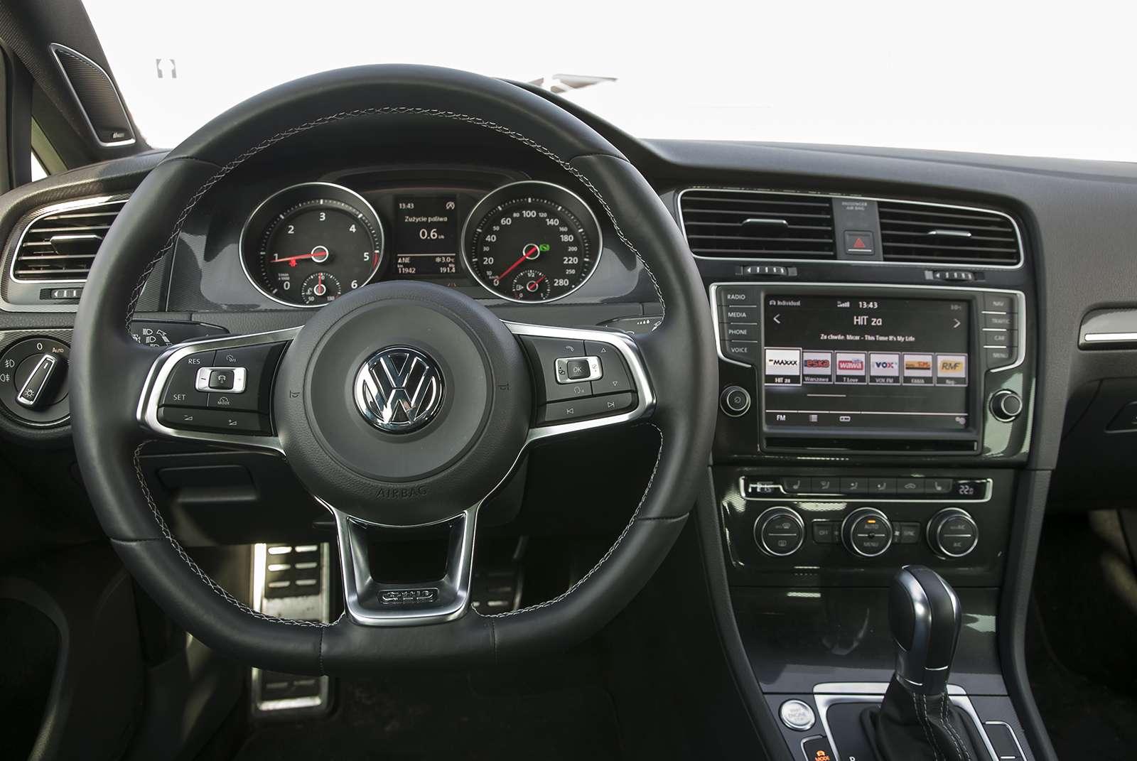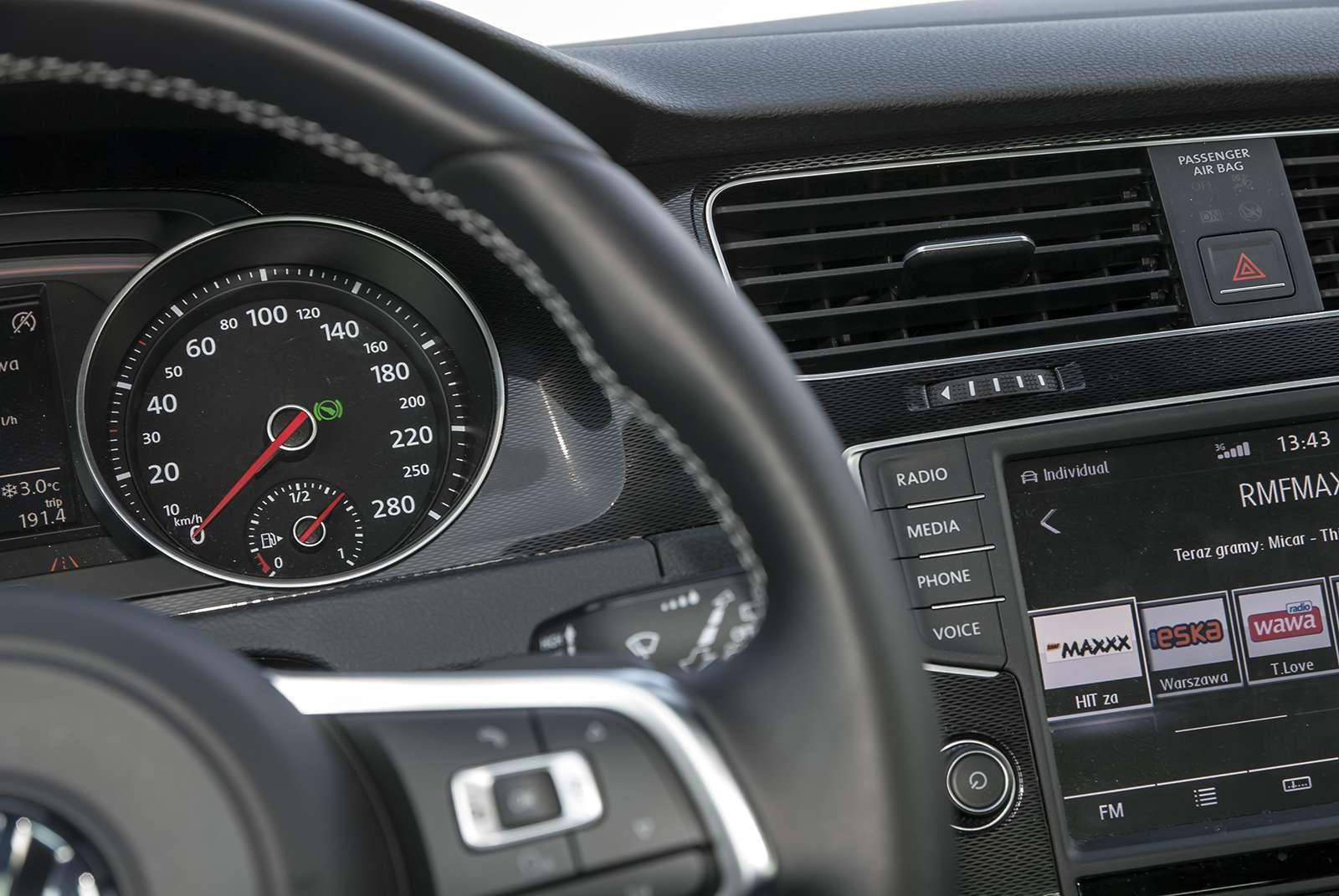We wnętrzu również nie doznamy zaskoczenia. Dobrze znane, praktyczne, którym wita nas od progu każdy Golf. Uzupełnieniem jest kraciasta materiałowa tapicerka, charakterystyczna dla usportowionych modeli marki. I to tyle, jeśli chodzi o urozmaicenia.