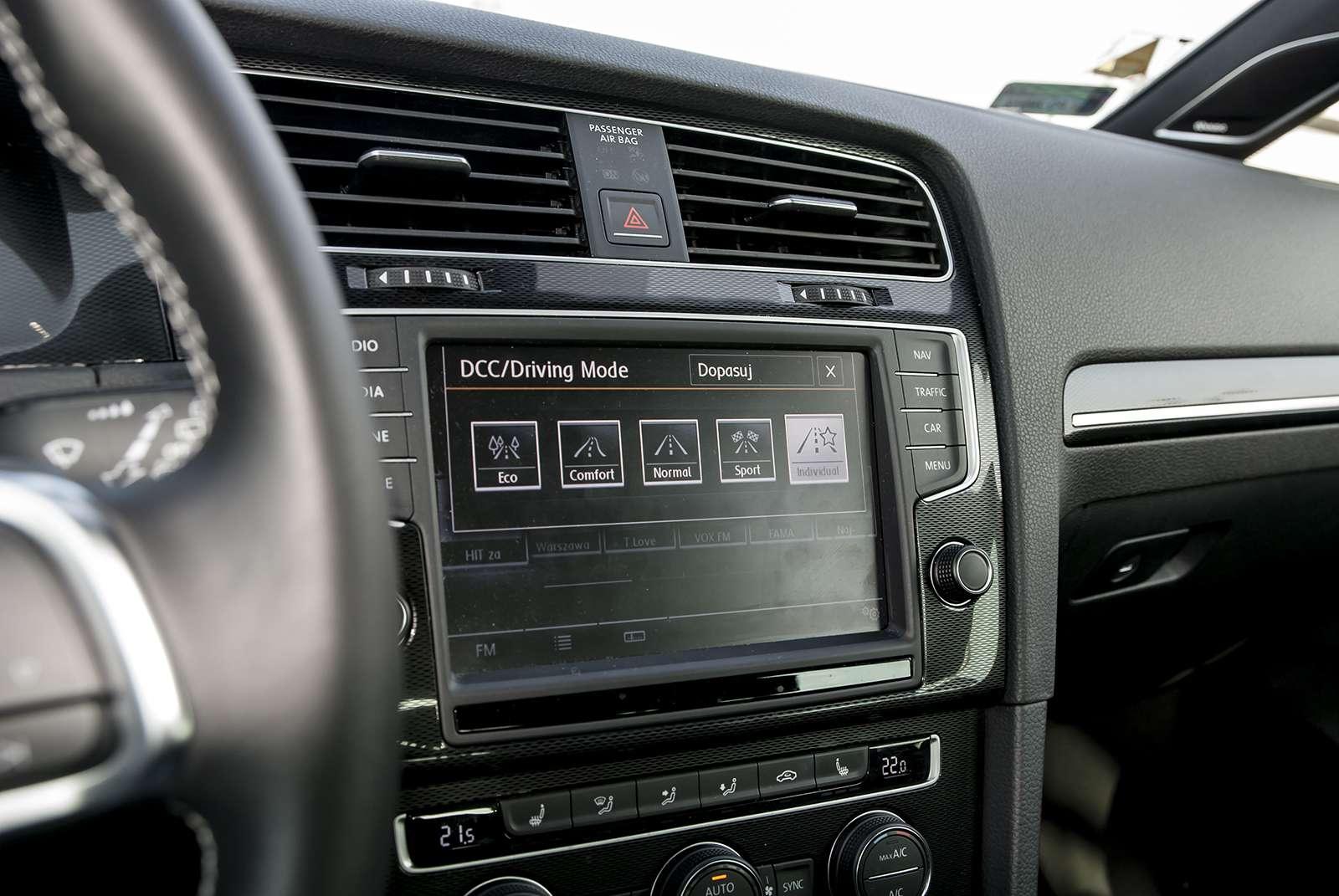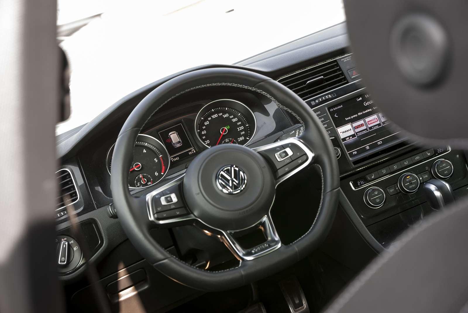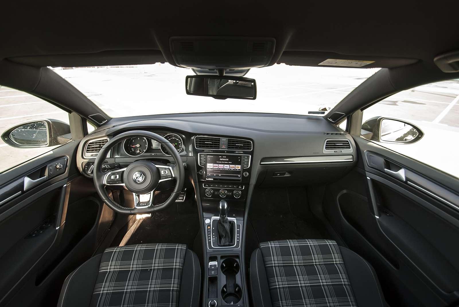 We wnętrzu również nie doznamy zaskoczenia. Dobrze znane, praktyczne, którym wita nas od progu każdy Golf. Uzupełnieniem jest kraciasta materiałowa tapicerka, charakterystyczna dla usportowionych modeli marki. I to tyle, jeśli chodzi o urozmaicenia.