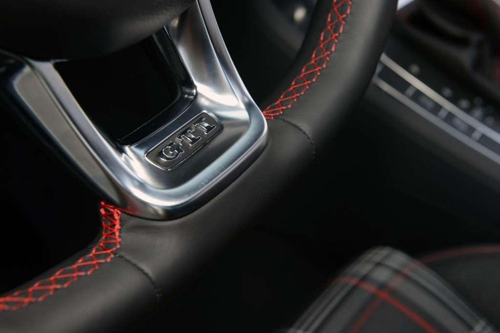 Sportowa odmiana popularnego modelu otrzymała mięsistą kierownicę ze ściętym wieńcem i czerwonym przeszyciem skóry, dźwignię zmiany biegów z zakończeniem w kształcie piłeczki golfowej (szkoda, że zabrało jej na wybieraku skrzyni DSG), czarną podsufitkę oraz kubełkowe fotele z kultową, szkocką kratą. Tradycja GTI jest pielęgnowana także na zewnątrz. Zmieniono zderzaki, grill o strukturze plastra miodu podkreślono czerwoną listwą, a do pokrywy bagażnika przytwierdzono spojler z czarną podstawą, która kolorystycznie nawiązuje do czarnego lakieru na klapie pierwszego Golfa GTI.