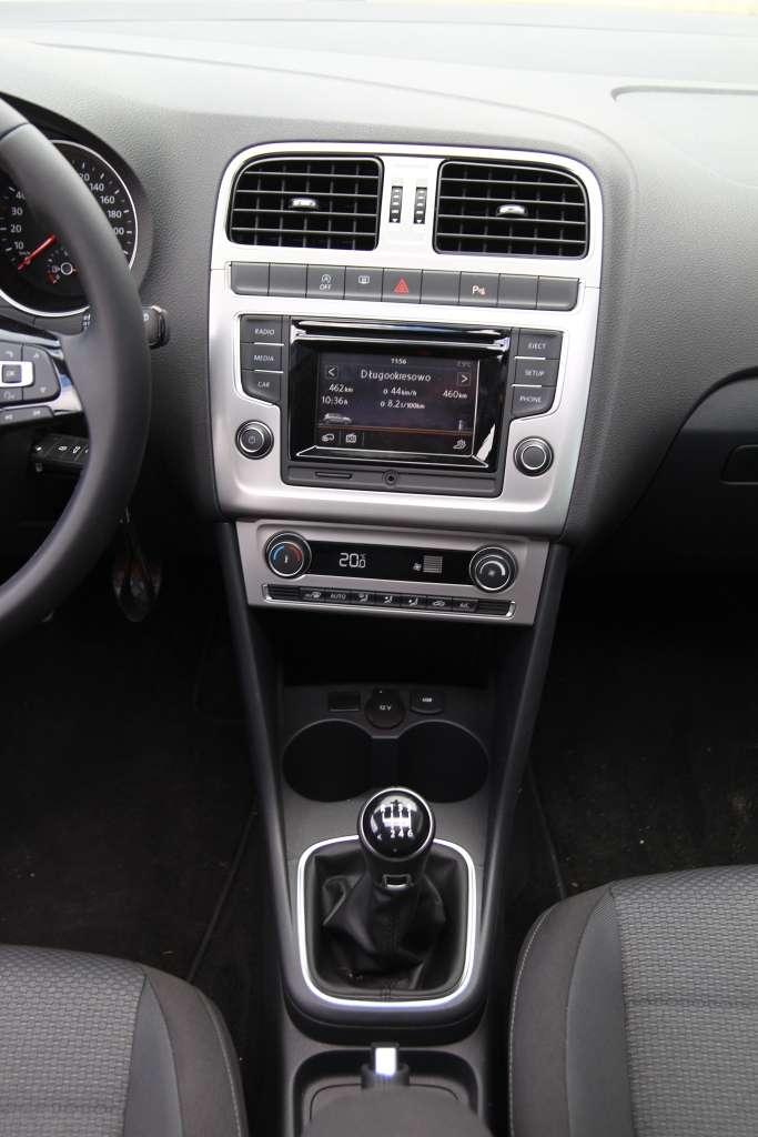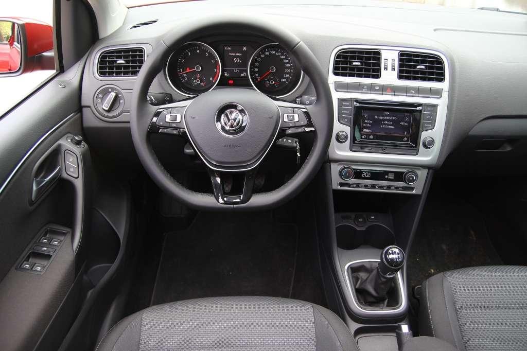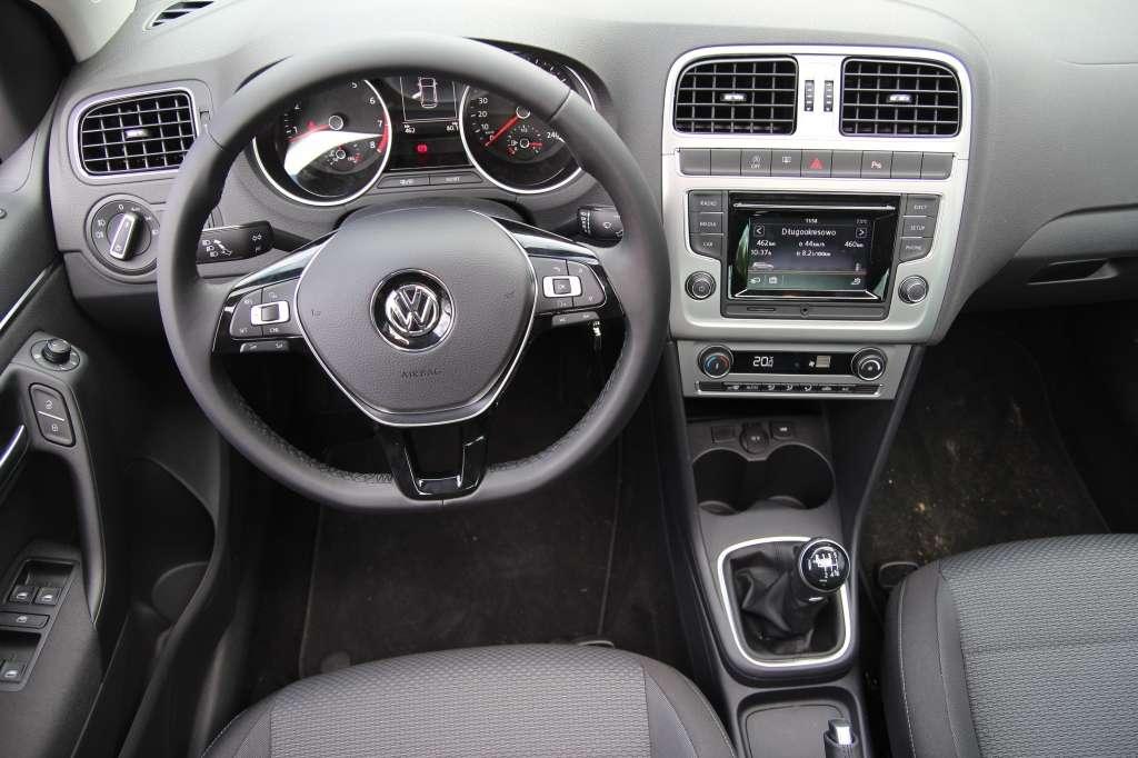 Po otwarciu drzwi wita nas typowy Volkswagen – prosty, rzeczowy i bardzo ergonomiczny. Odświeżone Polo zostało upodobnione do Golfa. Wskaźniki zamontowano w tubusach, dodano wielofunkcyjną kierownicę i nowy komputer pokładowy, a przeprojektowana konsola środkowa mieści znane z Golfa systemy multimedialne Composition Touch z 5-calowym, dotykowym ekranem, czytnikiem kart SD oraz gniazdem USB.