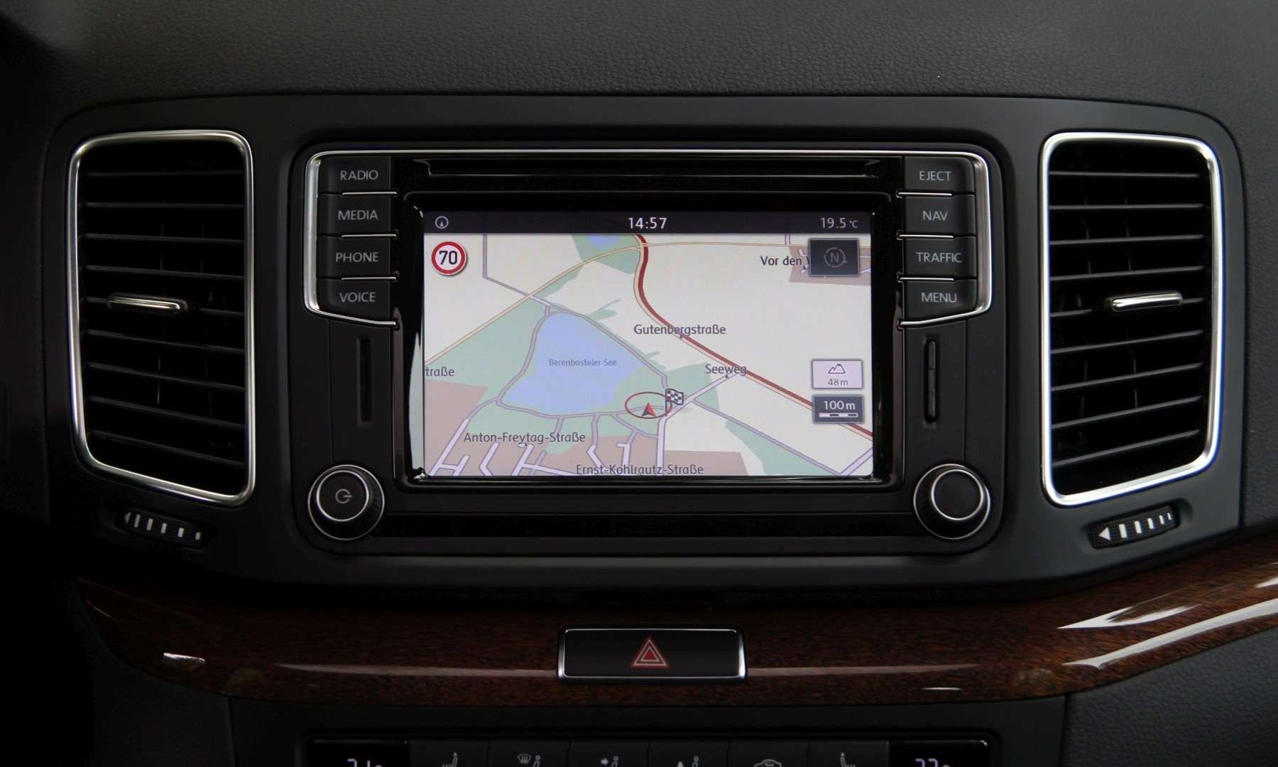 Poprzeczka powędrowała też w górę w kwestii systemów wpływających na bezpieczeństwo. Każdy Sharan otrzyma hamulec pokolizyjny, który zablokuje hamulce po uderzeniu w przeszkodę, by zmniejszyć ryzyko zderzenia z kolejnym obiektem. Za dopłatą Volkswagen zaczął oferować Front Assist z funkcją awaryjnego hamowania po wykryciu prawdopodobieństwa zderzenia przy niskich prędkościach. Powyżej 30 km/h kierowca zostanie ostrzeżony o niebezpieczeństwie dźwiękowo oraz komunikatem na ekranie komputera pokładowego. Listę opcji wydłużył też adaptacyjny tempomat, asystent parkowania z programem do wyjeżdżania z miejsca postojowego oraz system monitorowania martwego pola, który nie tylko sygnalizuje obecność pojazdów na sąsiednich pasach, ale również ostrzega o poprzecznym ruchu podczas cofania.
