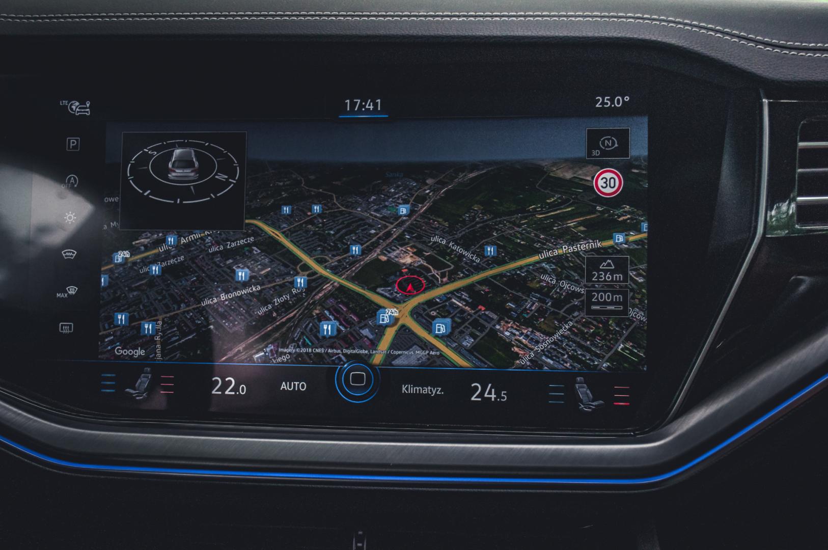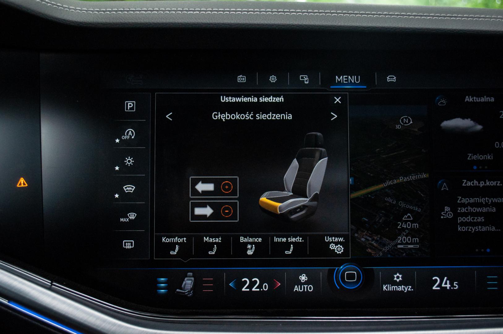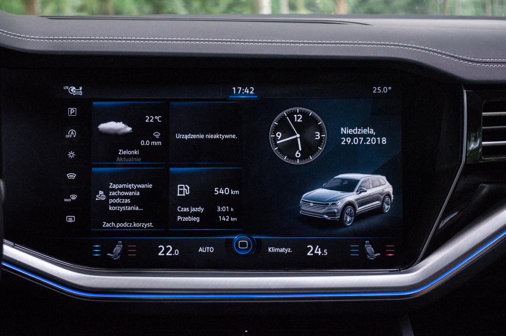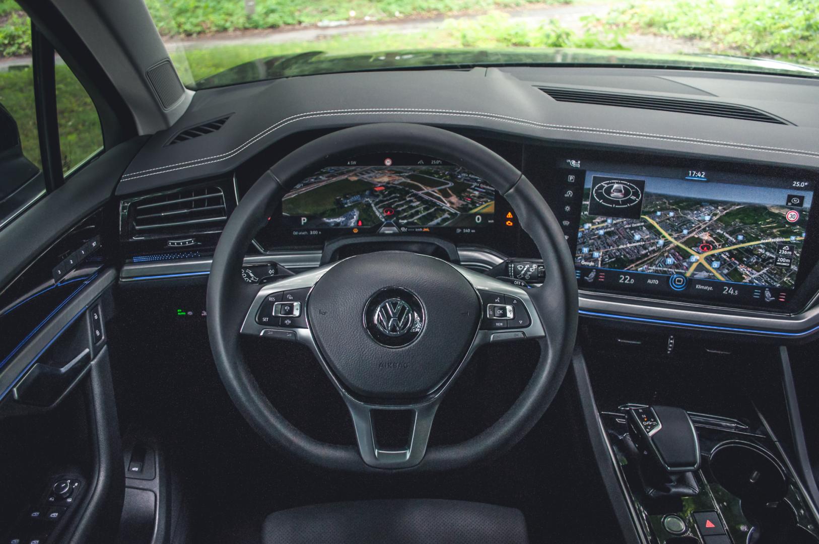 Wyposażenie Touarega jest naprawdę bogate, a ze wszystkimi opcjami tworzy jeden z najbardziej zaawansowanych technologicznie samochodów na rynku. Tylko… W cenniku w ogóle nie ma mowy o systemie kamer 360 czy też z widokiem z lotu ptaka. Jest tylko Rear Assist z Park Assist 3.0, a więc kamera cofania i system, który potrafi zaparkować samemu niemal w dowolnym miejscu. I tego standard nie obejmuje – trzeba dopłacić niecałe 3 tys. zł. Trochę to dziwne, bo kamera 360 jest już w Seacie Ateca i wielu innych, niższej klasy, samochodach. Ktoś tu o czymś zapomniał, czy świadomie uznał za zbędne?